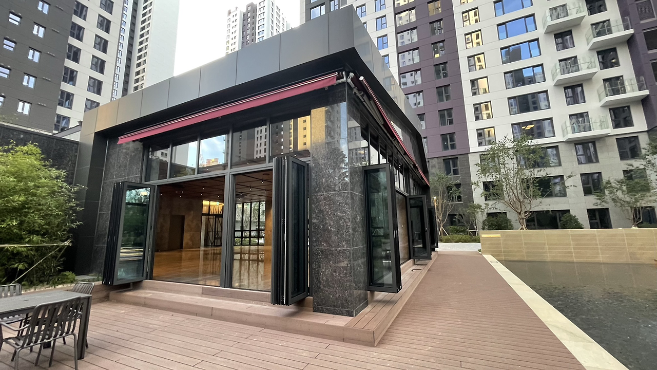 파인갤러리 조경시설을 바라볼 수 있도록 전면과 측면에 폴딩도어를 설치했습니다. 날씨 좋을 때 활짝 열고 자연을 만끽할 수 있는 공간입니다.