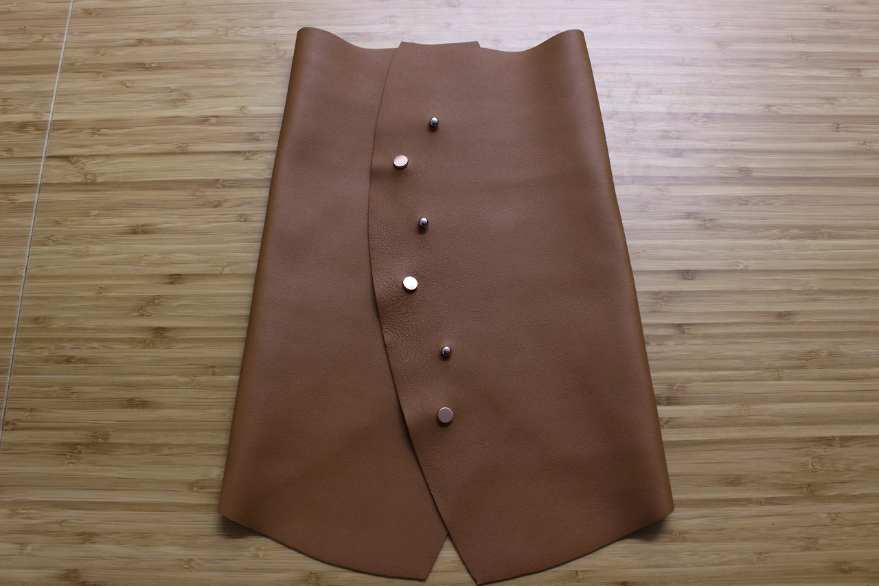 이를 해결하기 위해서 가짜 가죽으로 먼저 대략적인 형태를 만들어서 입혀보면서 최종 모양의 패턴을 확정했었어요.