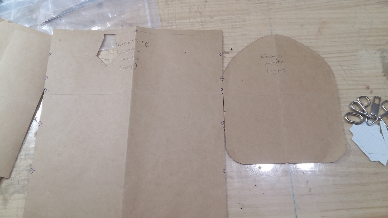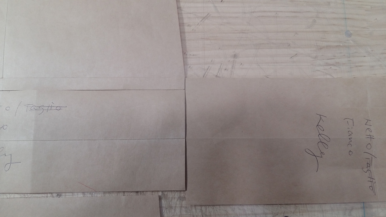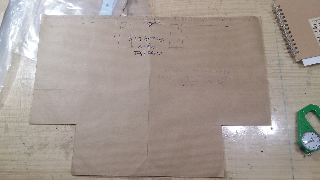 제작 상 필요한 정보들은 형지에 기록해 두면 더욱 좋겠습니다. 예를 들어 얼마 두께로 전체 피할을 할것이며 겉감은 몇장 재단하고, 안감은 어떻게 할 것인지, 부분피할은 얼마의 너비와 두께로 할것인지 등 입니다.