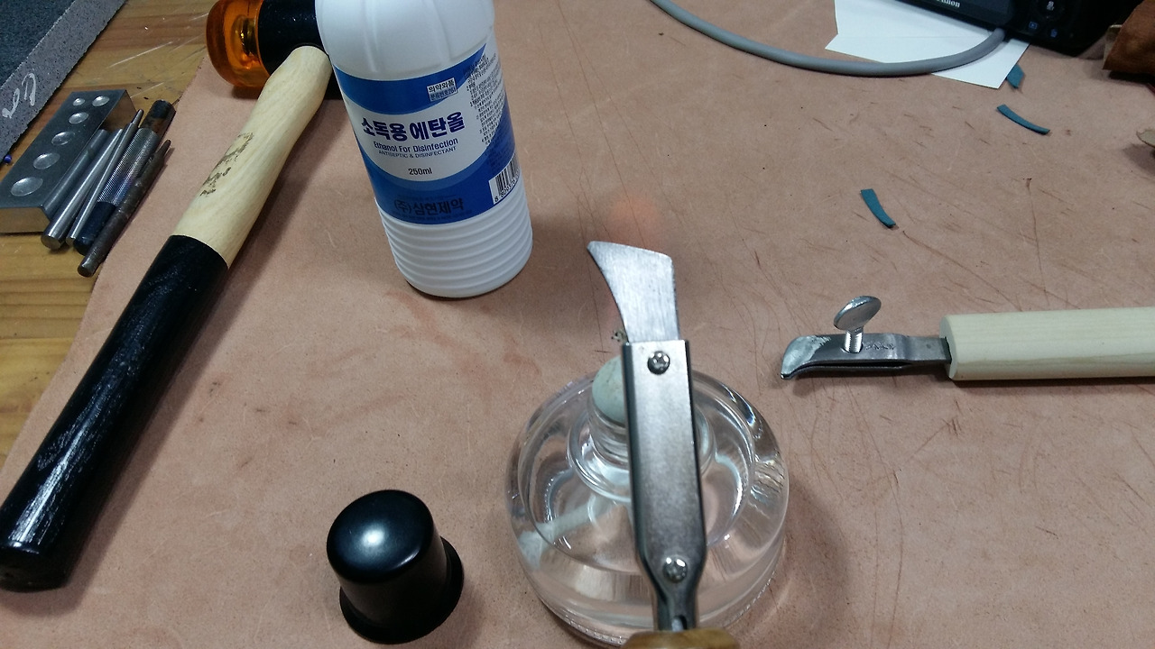 생각해 보면, 예전에는 이렇게 쇠 인두를 직접 불에 달궈서 가죽에 크리징을 했을 것입니다.