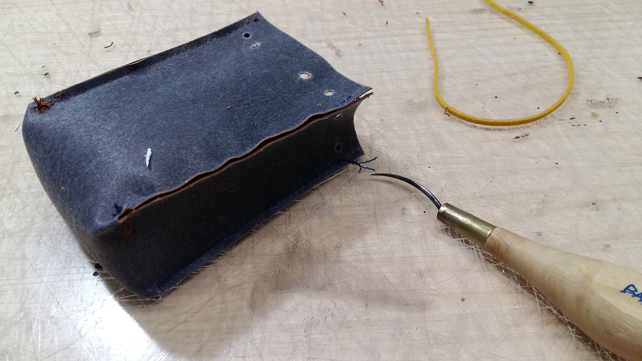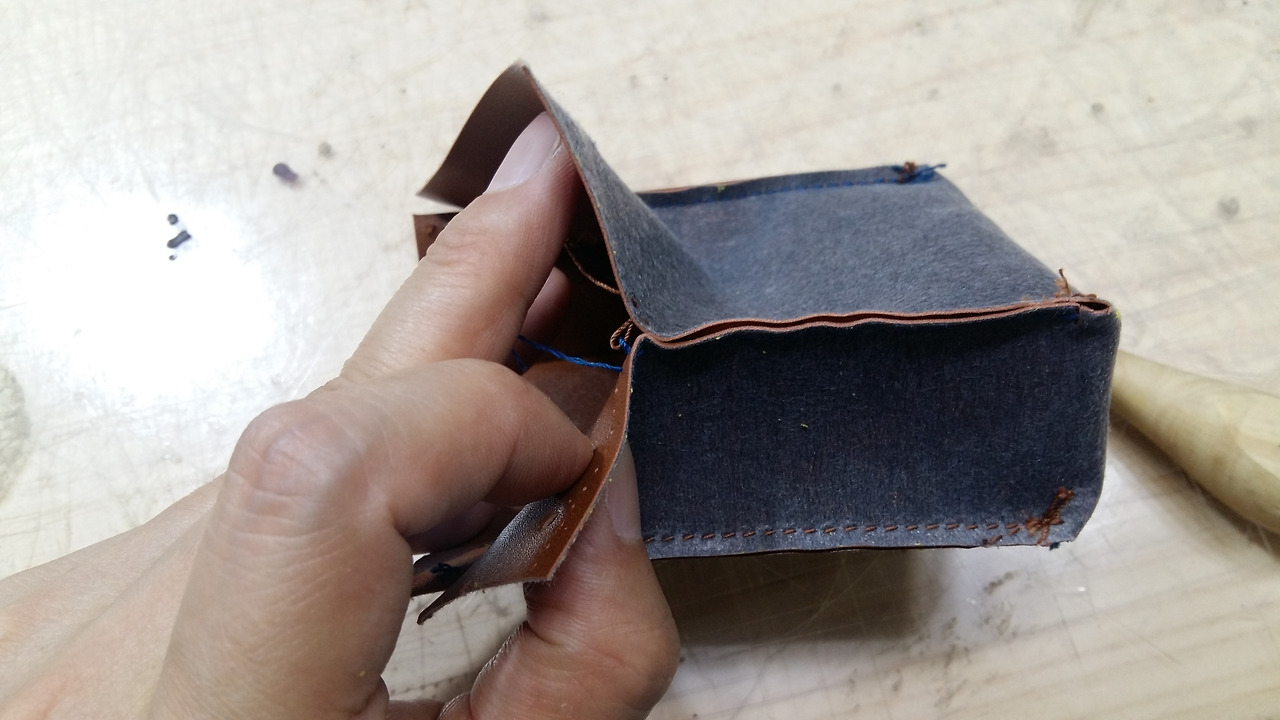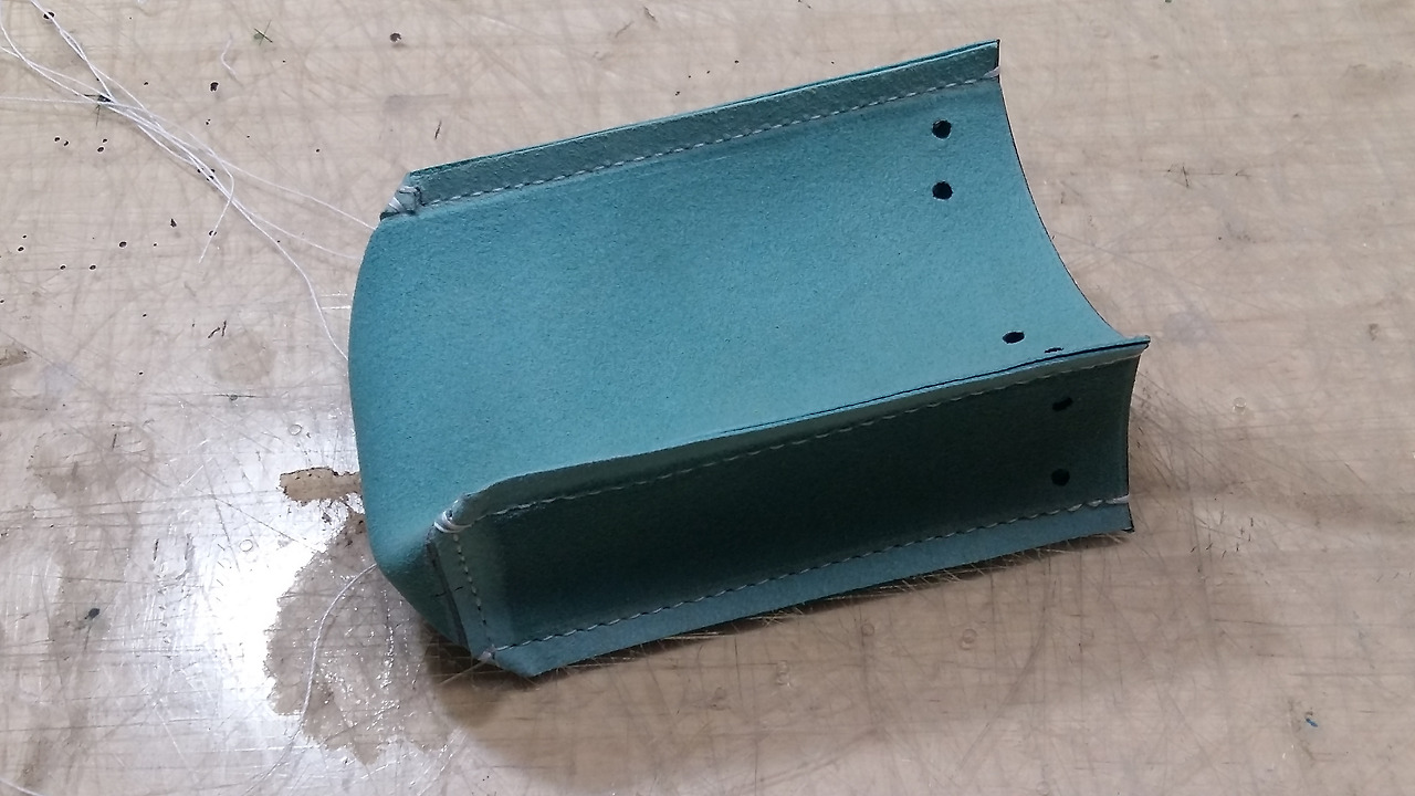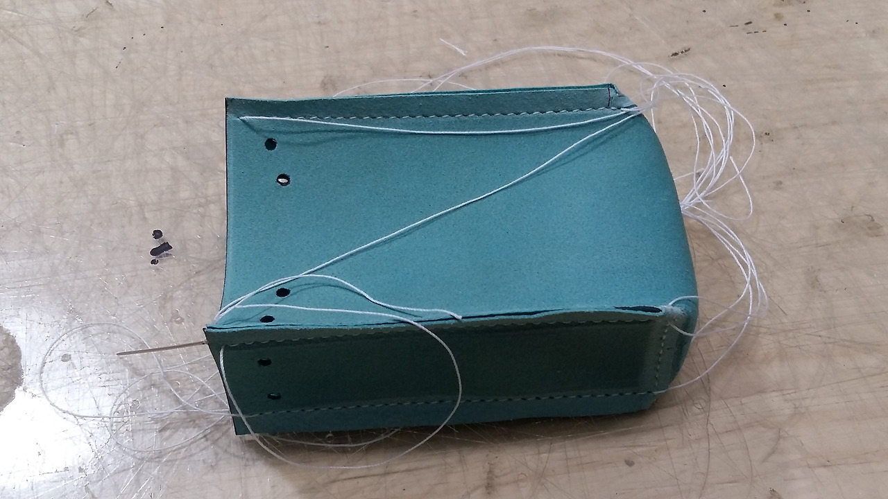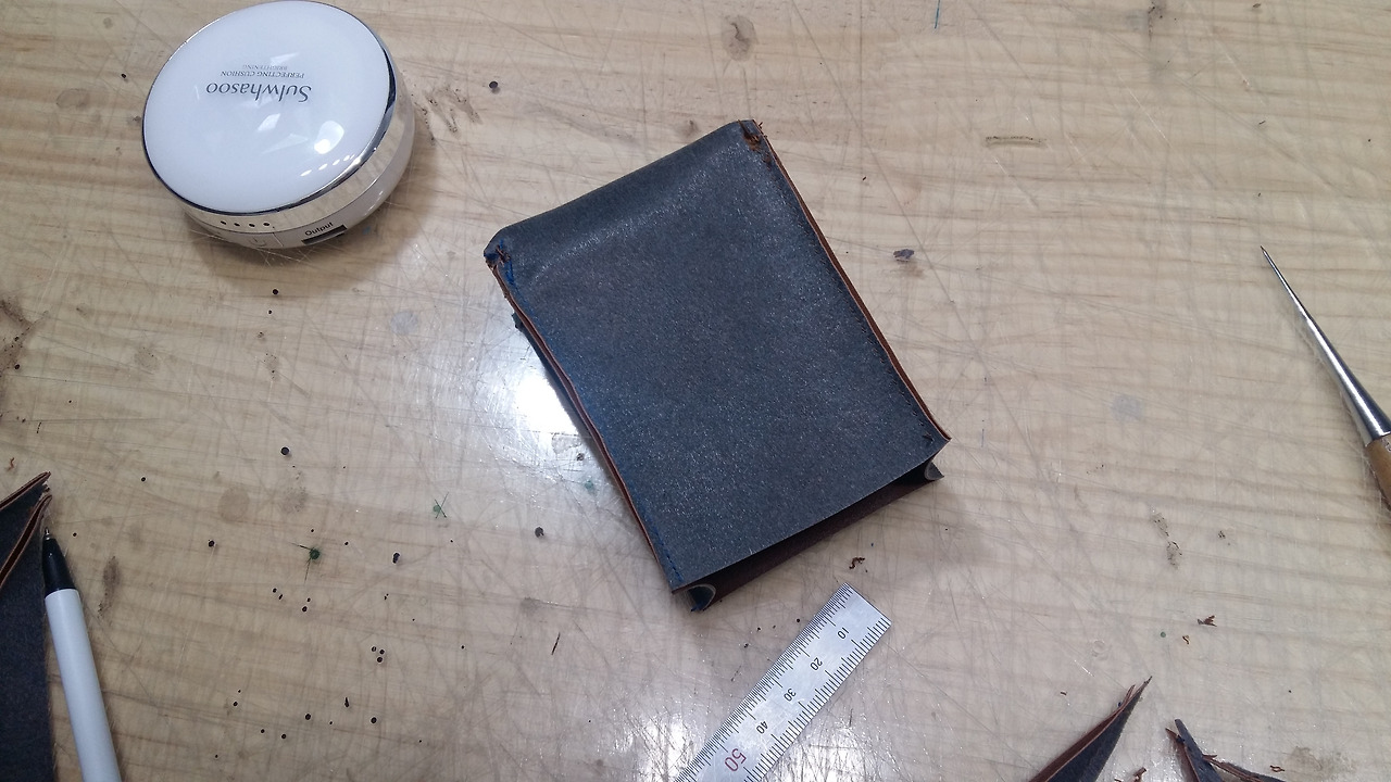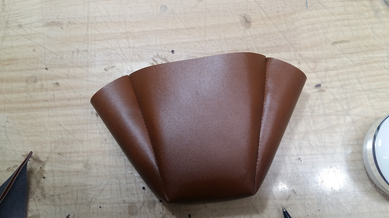 양쪽 옆판은 별도로 재단해서 다시 본체에 결합시키면 가죽의 면적도 커버가 되고 로스도 적겠습니다.