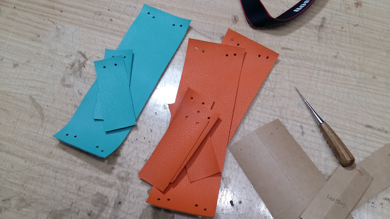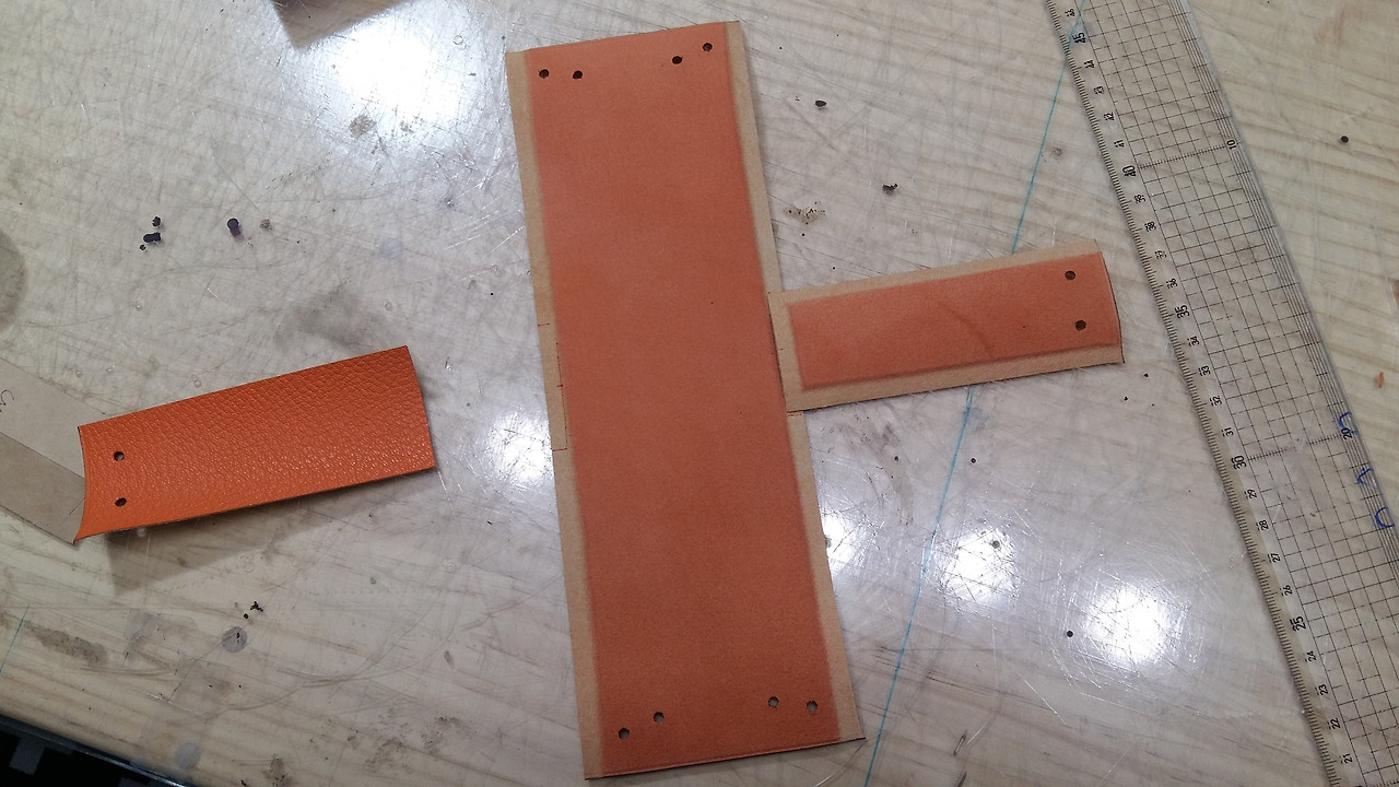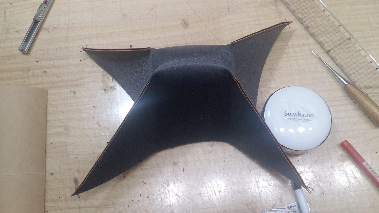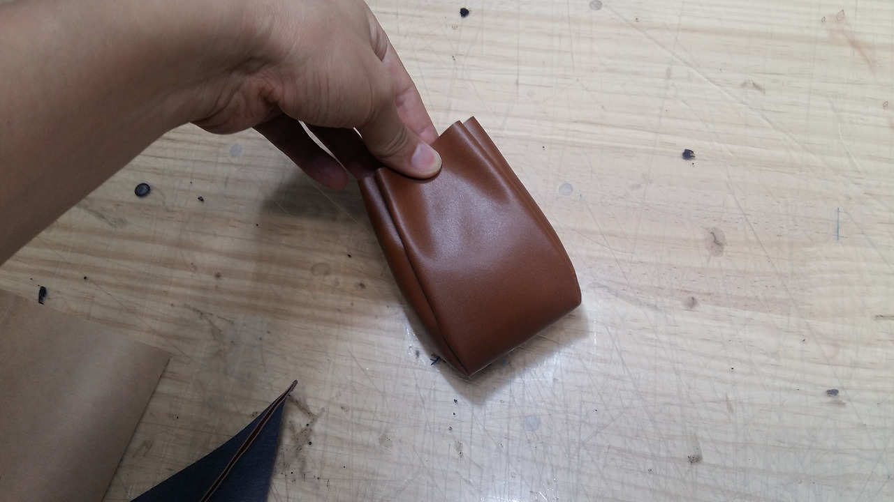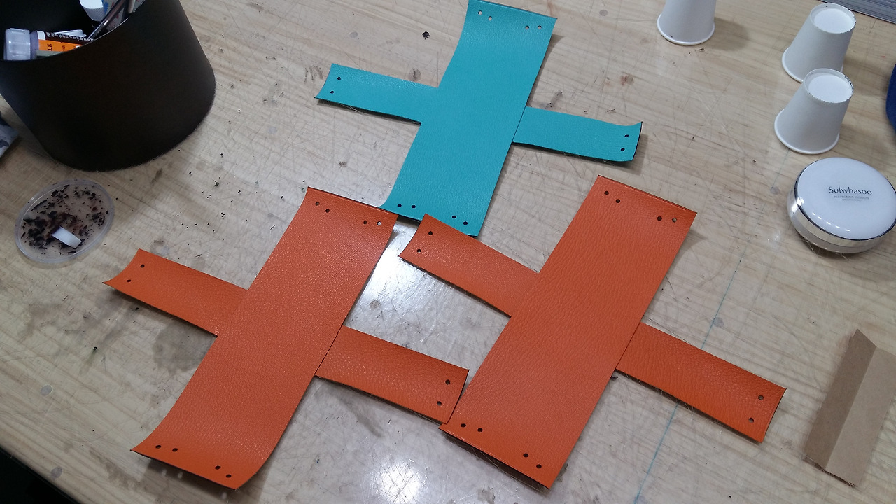 처음 가형태의 형지대로 인조가죽을 만들어 주세요.