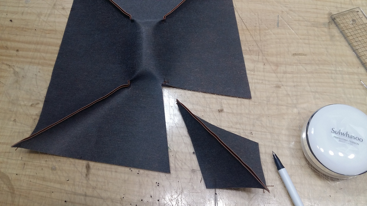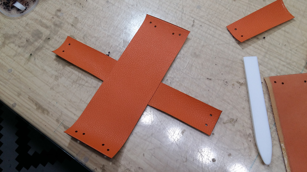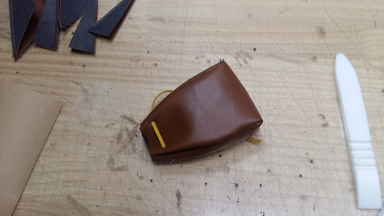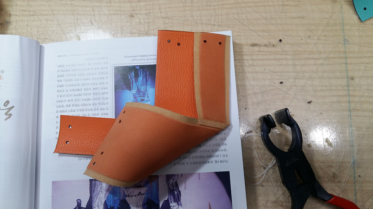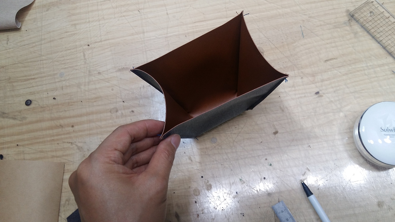 처음 가형태의 형지대로 인조가죽을 만들어 주세요.