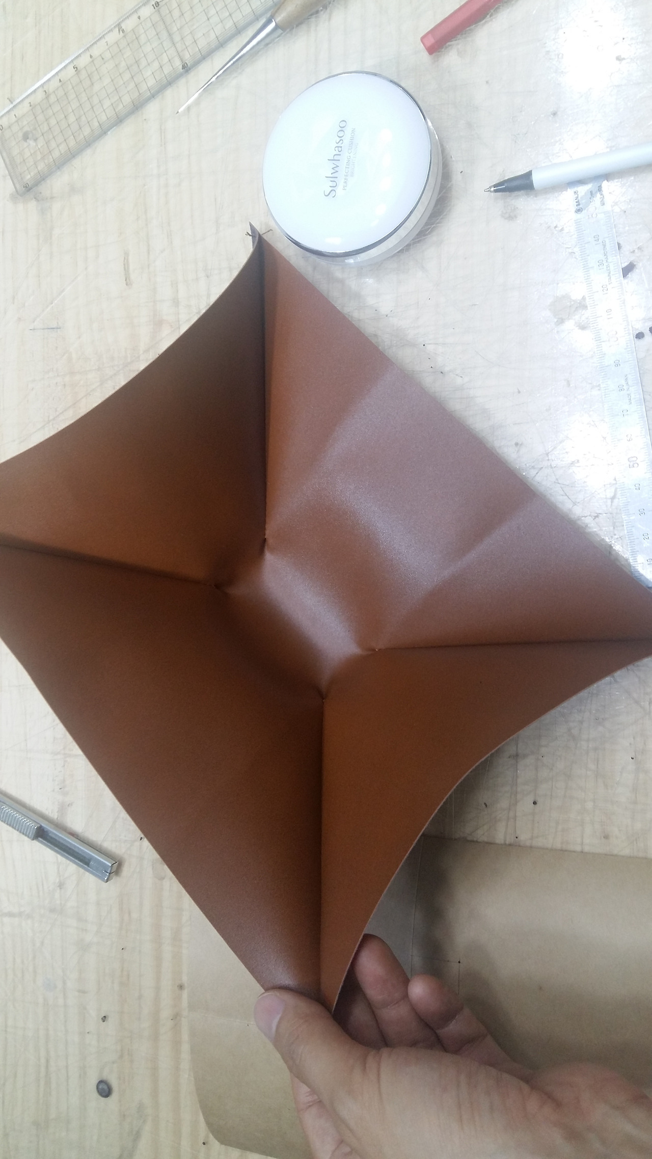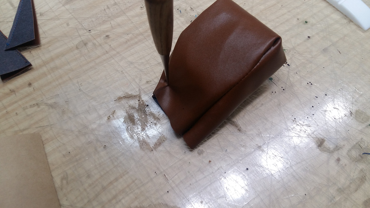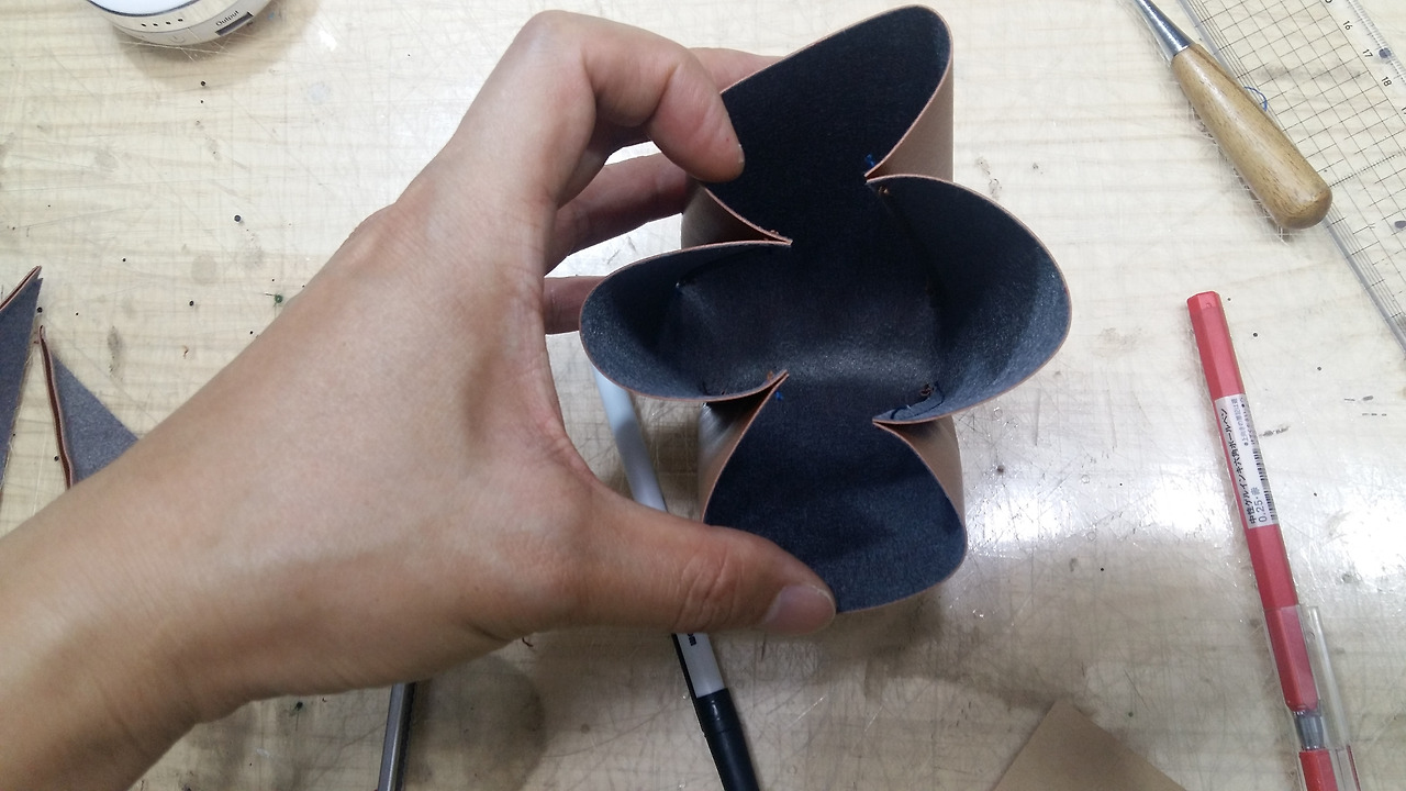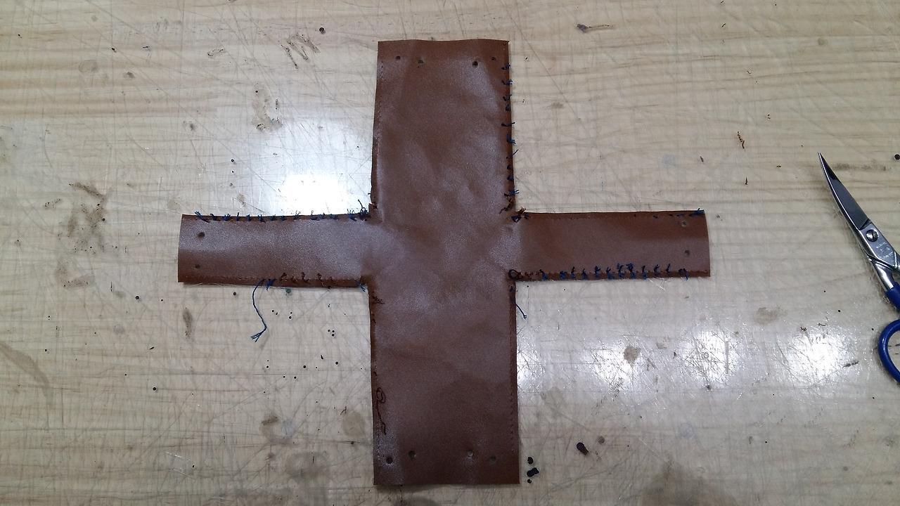 처음 가형태의 형지대로 인조가죽을 만들어 주세요.
