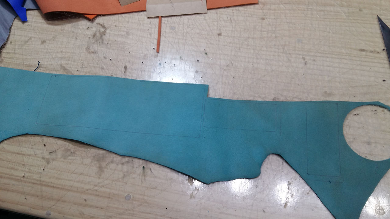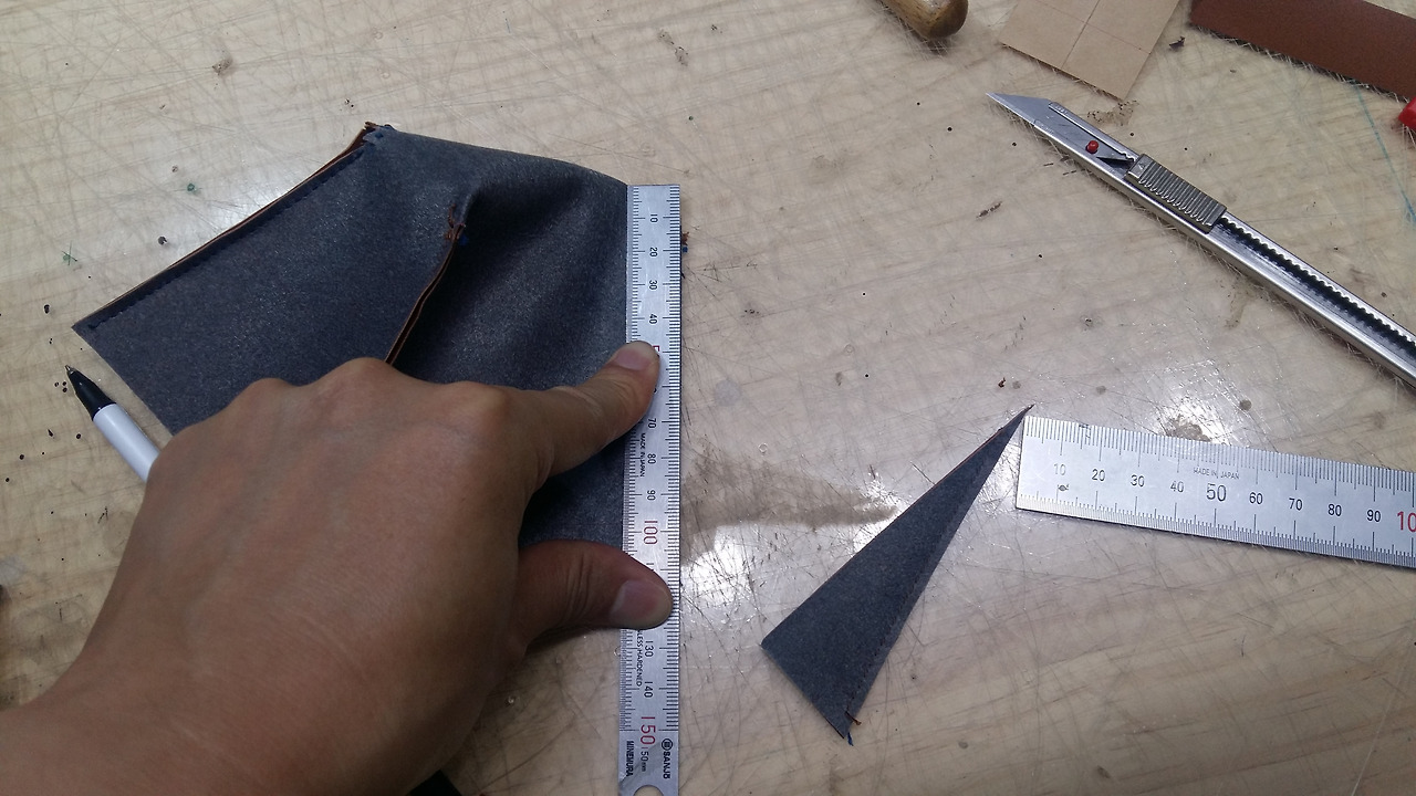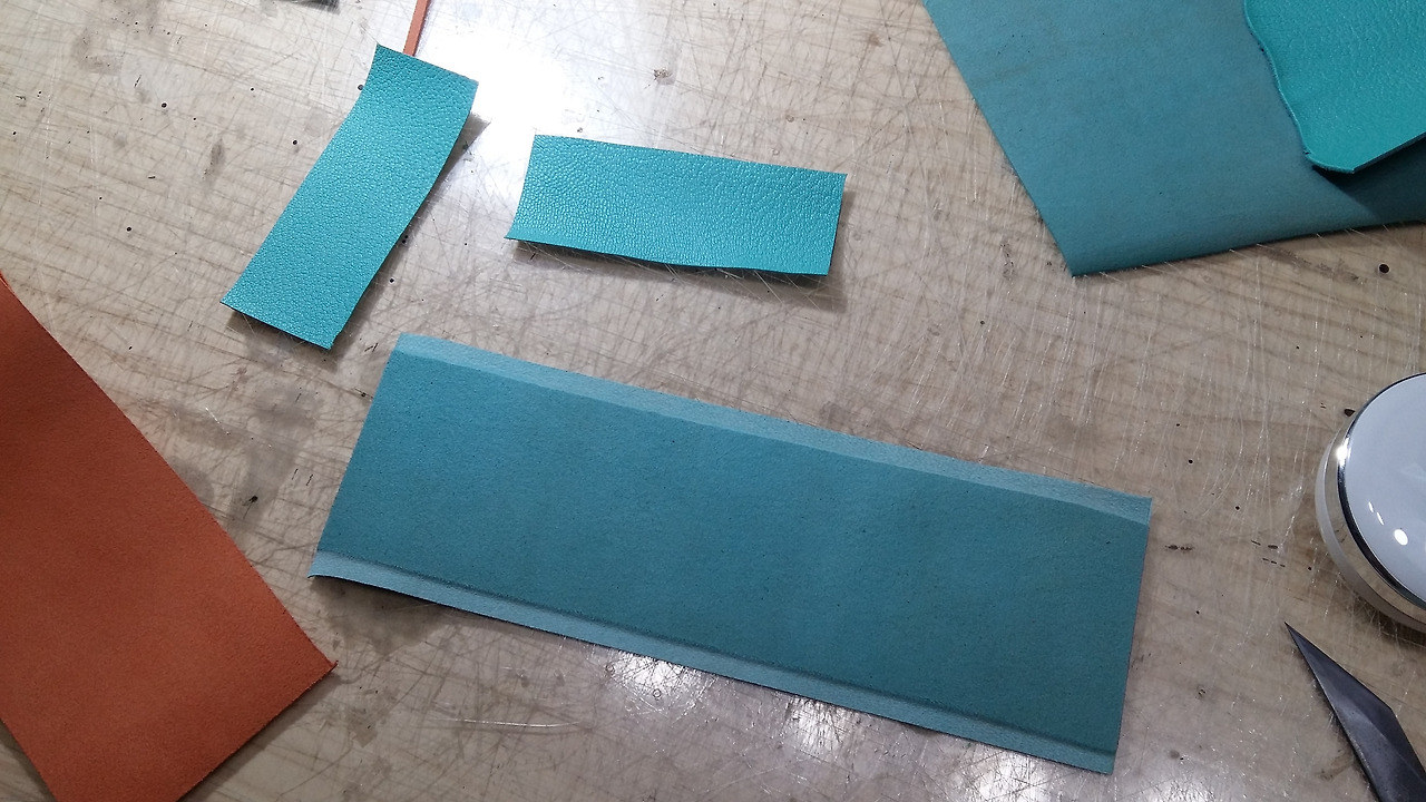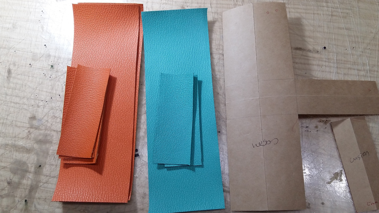우선 지금 패턴을 절개없이 그대로 사용하려면 그 만큼의 가죽의 면적이 나와야 하는데 지금 제가 가지고 있는 것이 커버를 하지 못합니다.