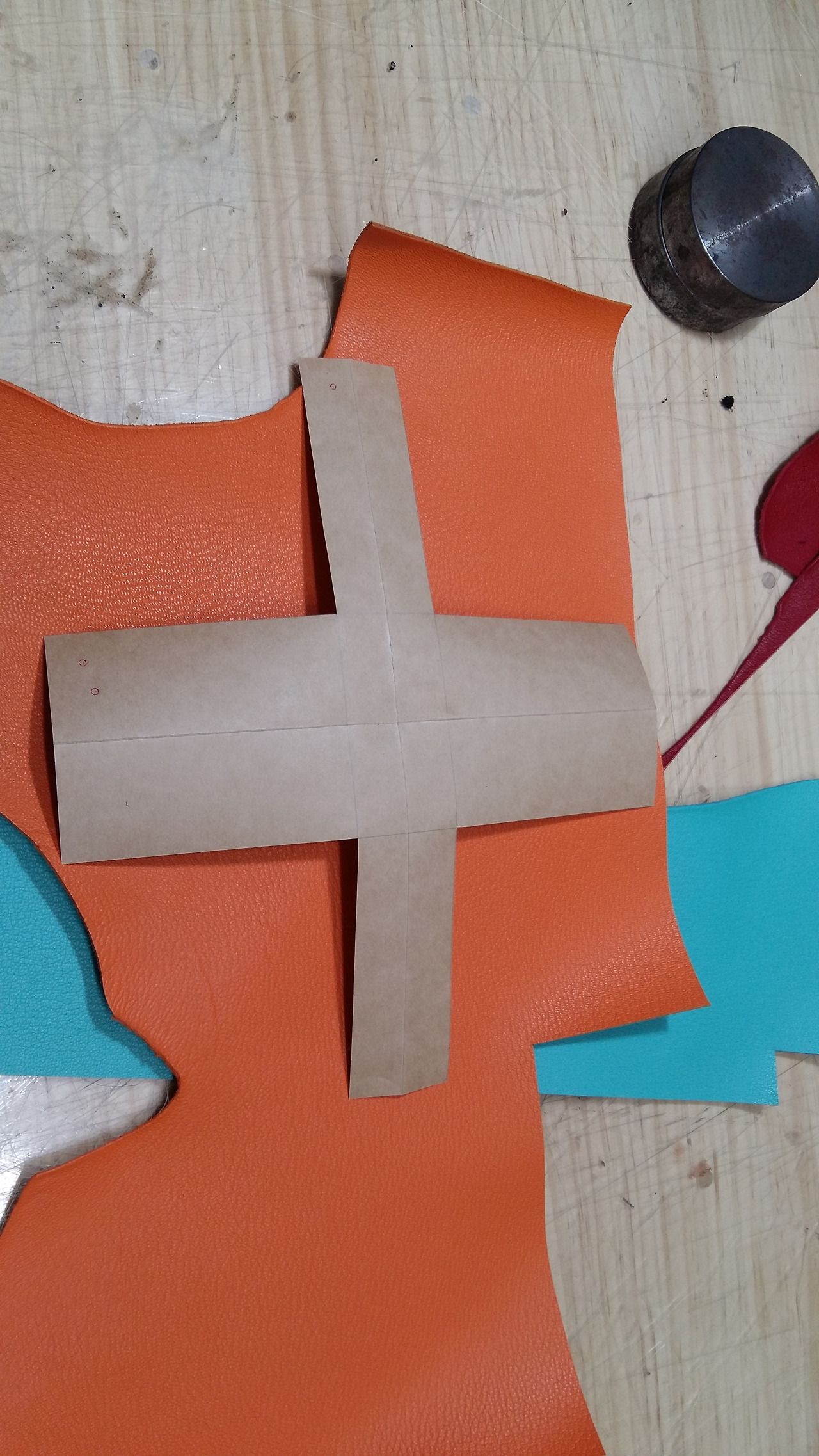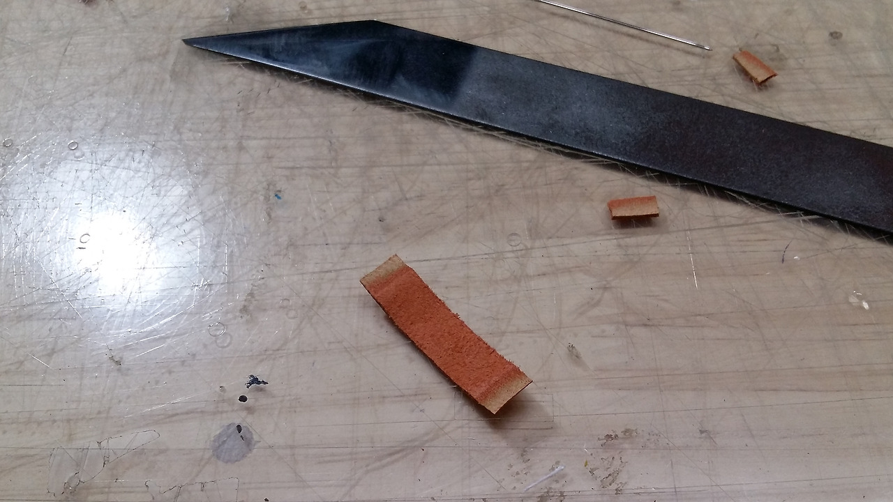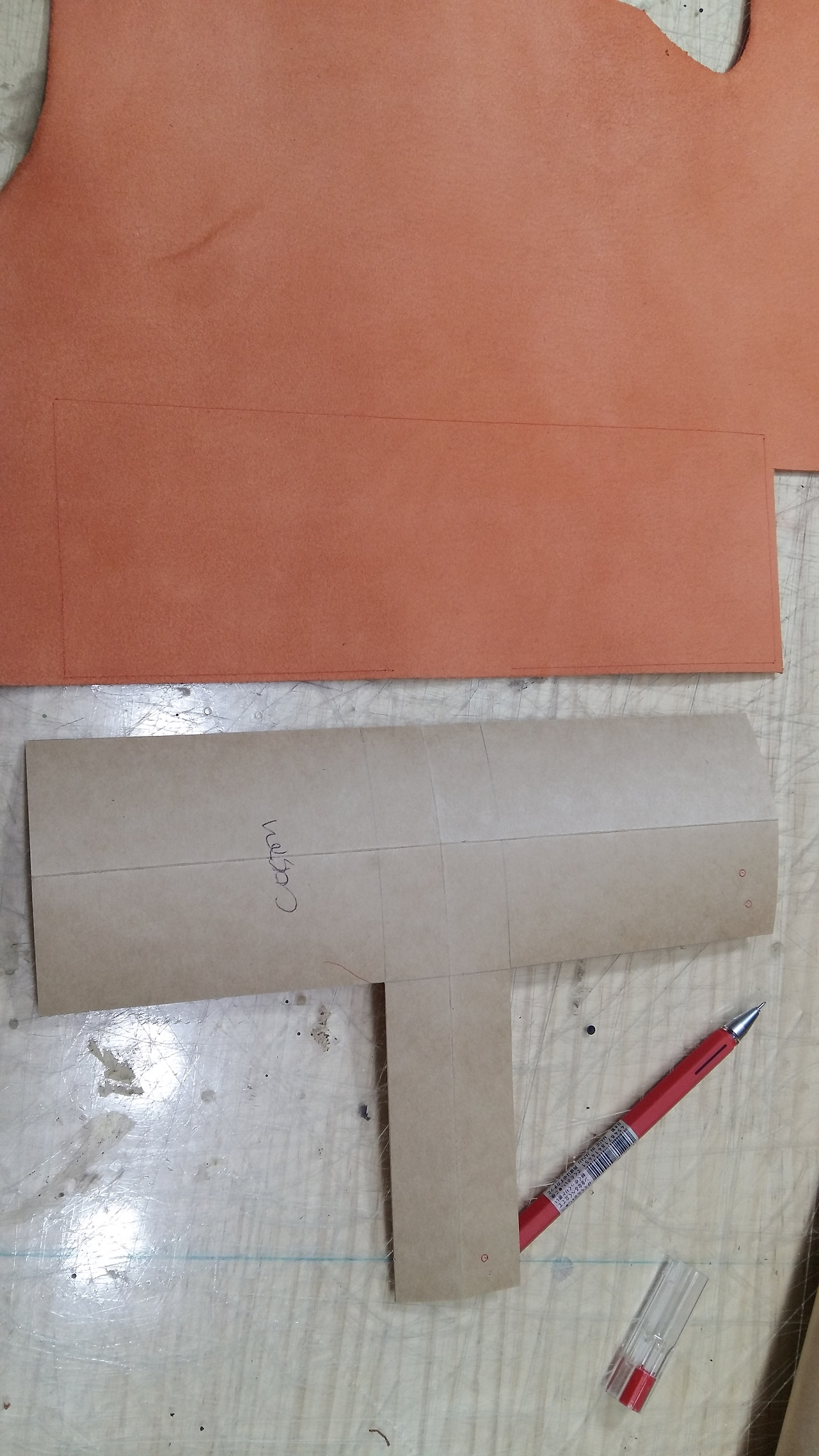 우선 지금 패턴을 절개없이 그대로 사용하려면 그 만큼의 가죽의 면적이 나와야 하는데 지금 제가 가지고 있는 것이 커버를 하지 못합니다.