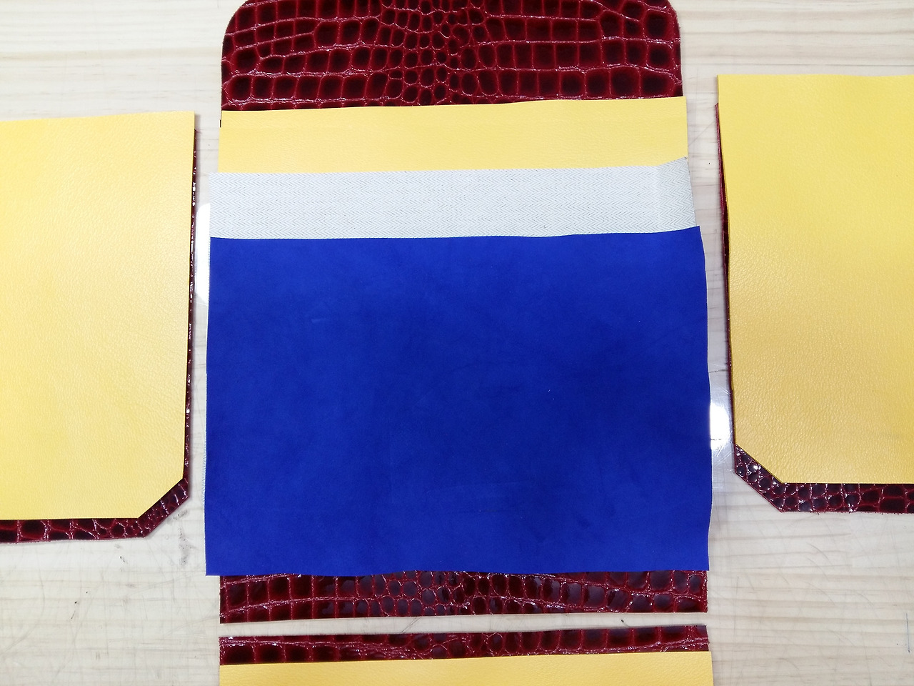 다소 딱딱한 보강재를 쓰되 가방 밑 부분이나 덮개 부분처럼 말리고 구부려지는 부분을 용이하게 하기 위해서입니다.
