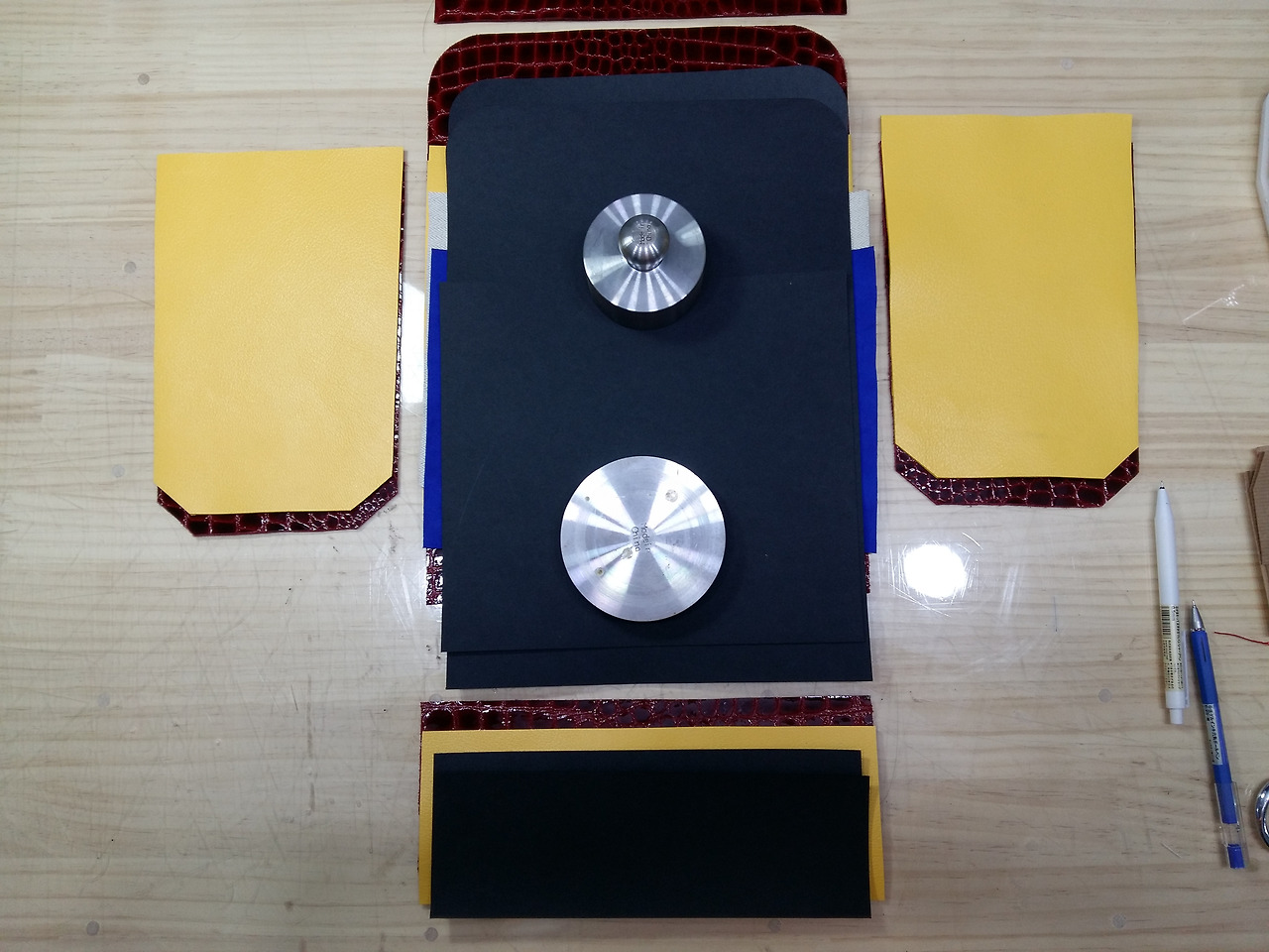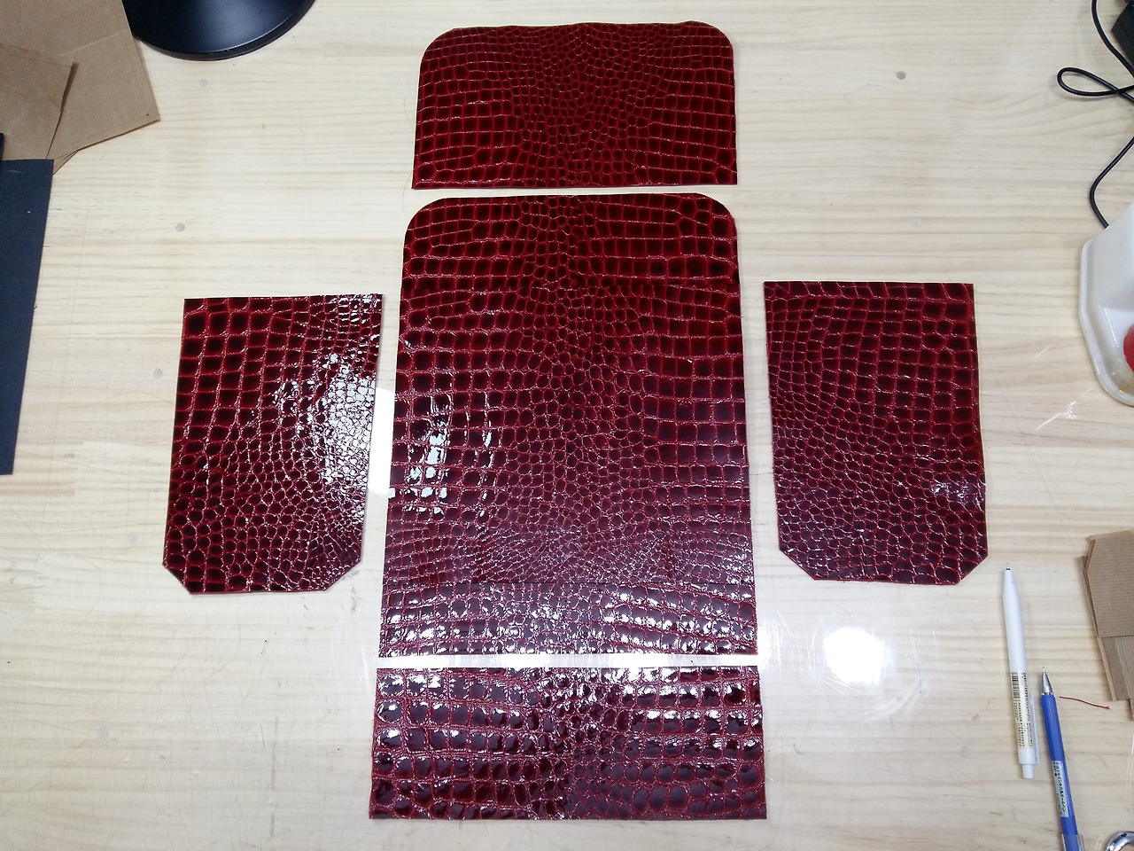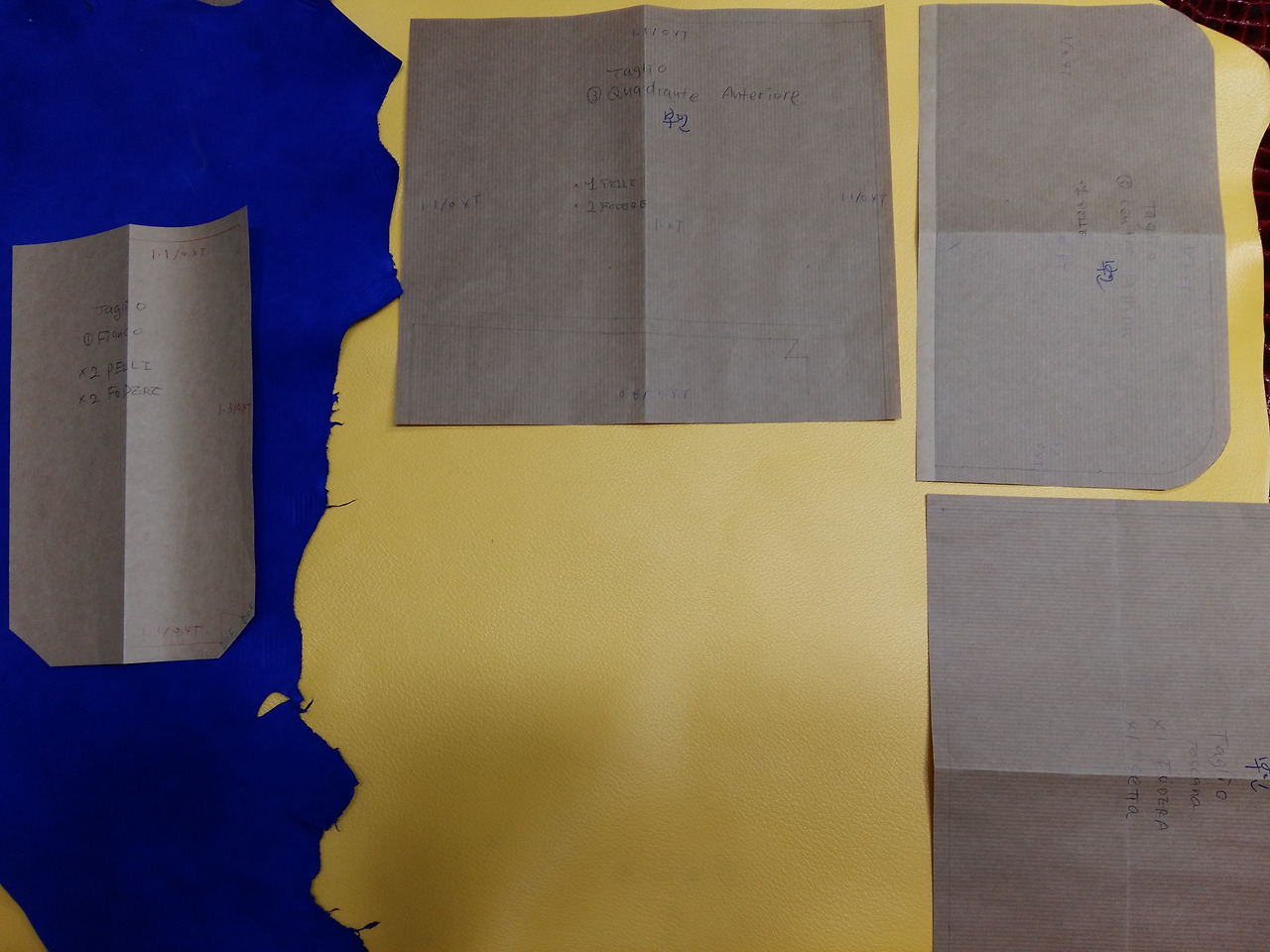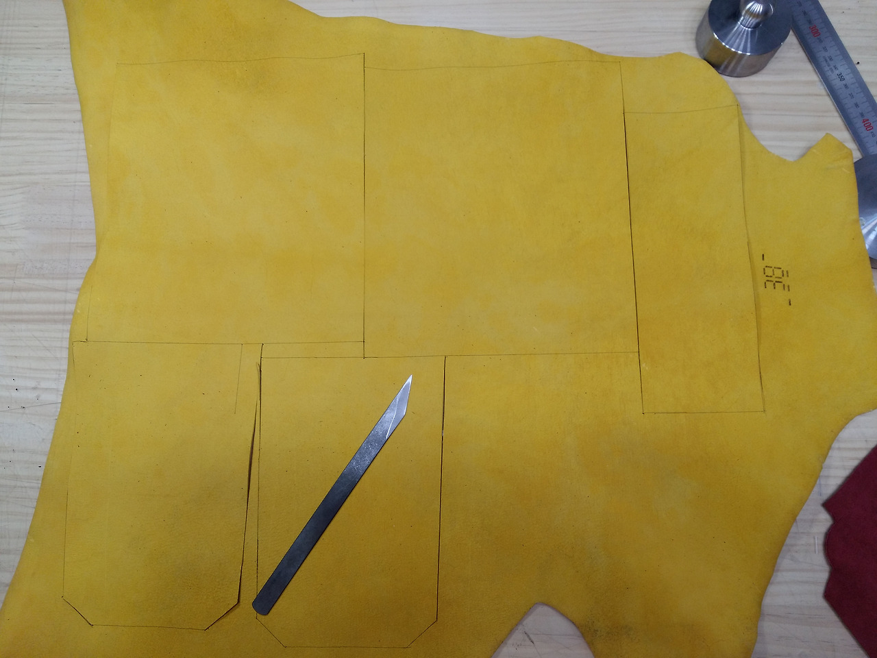 앞에서 만든 형지대로 가죽, 안감, 부자재를 재단해 보겠습니다.