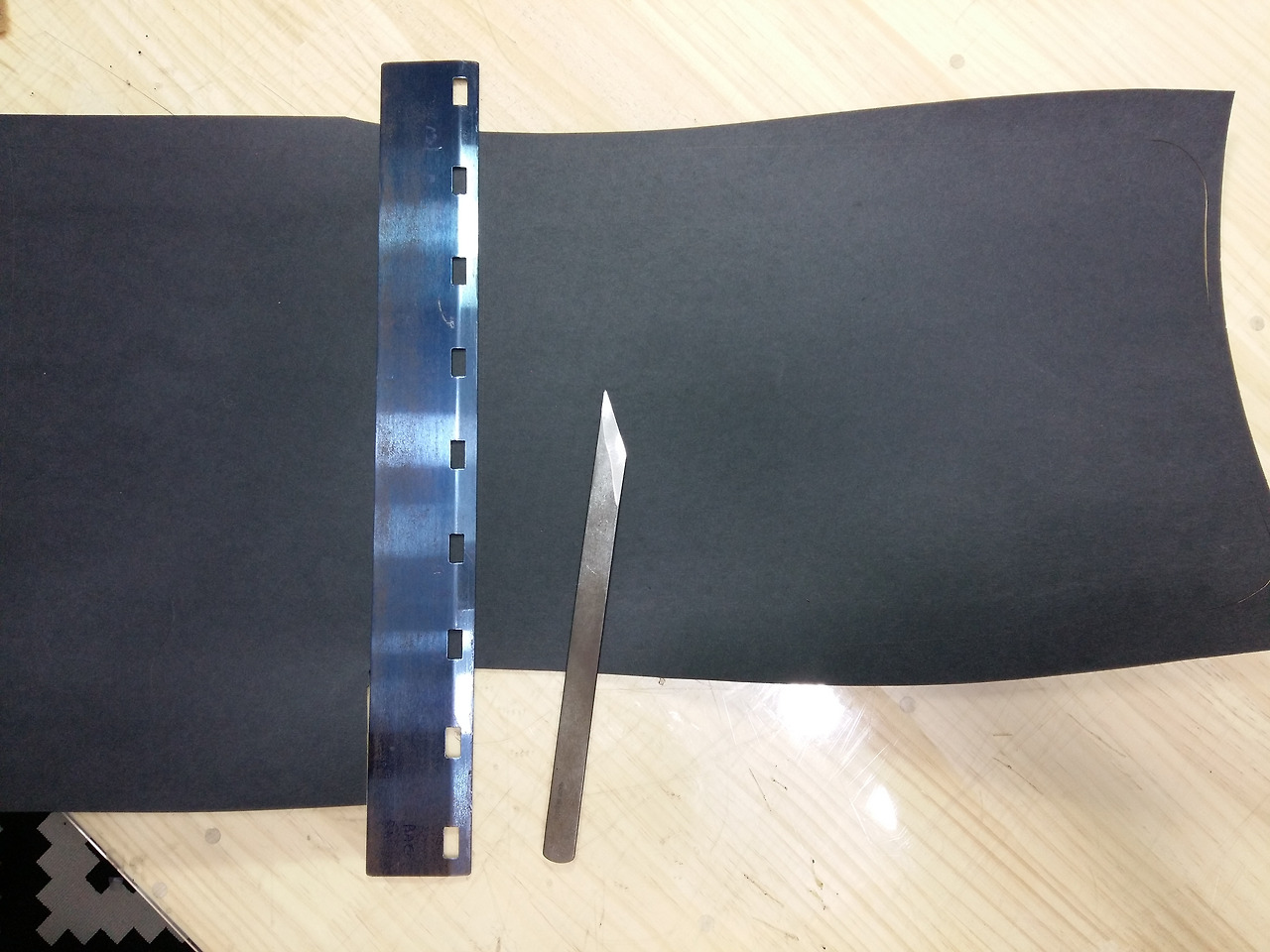 자른 것을 보시면 접히는 부분은 약간 반원 모양으로 되어 있고 이런 모양이 안으로 구부려질 때 보다 잘 될 수 있는 모양이 될 것입니다.