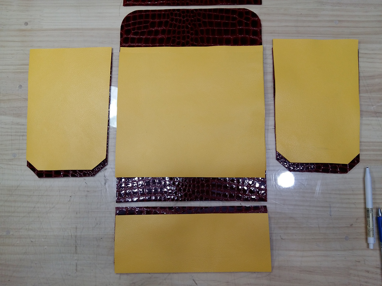 그리고 만약 본 샘플처럼 무늬가 있다면 무늬의 균형과 가방의 모습을 고려해서 재단하셔야겠습니다.