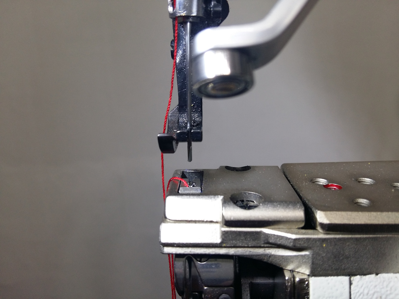만약 후면에 결정이 생긴다면 위실의 텐션이 약한 경우이고 해결책은 위실이 더 강하게 위로 실을 낚아채도록 위실의 텐션을 더 주세요.
