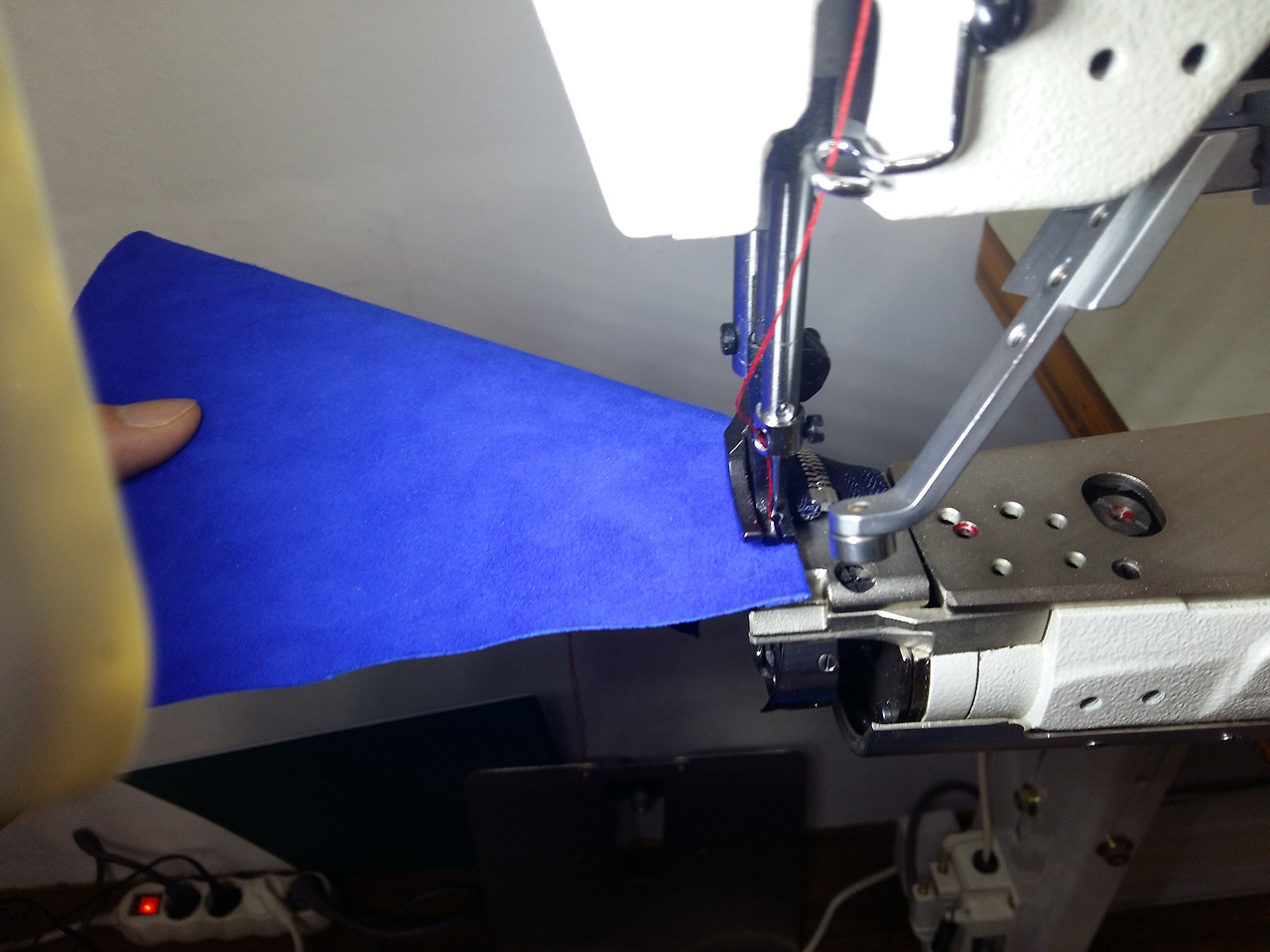 이런 작업물은 미싱 전에 눈으로도 체크를 하시고 또 손으로 쓸어내려서 두께의 이상이 없는지, 노루발이 가는 방향에 걸림은 없는지를 확인하시면 좋겠습니다.