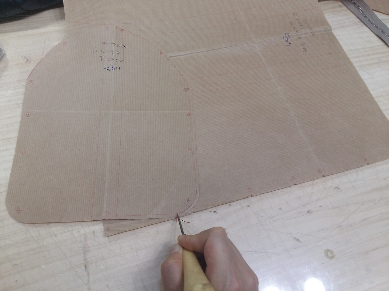 이번 패턴에서는 곡면과 직선이 같이 결합하는 부위에서 그 총길이를 계산하기 위해서 미싱이 되었을 때를 가정하고는 굴리고 변곡점들을 찍어서 마킹하는 것이 중요한 포인트가 되겠습니다.
