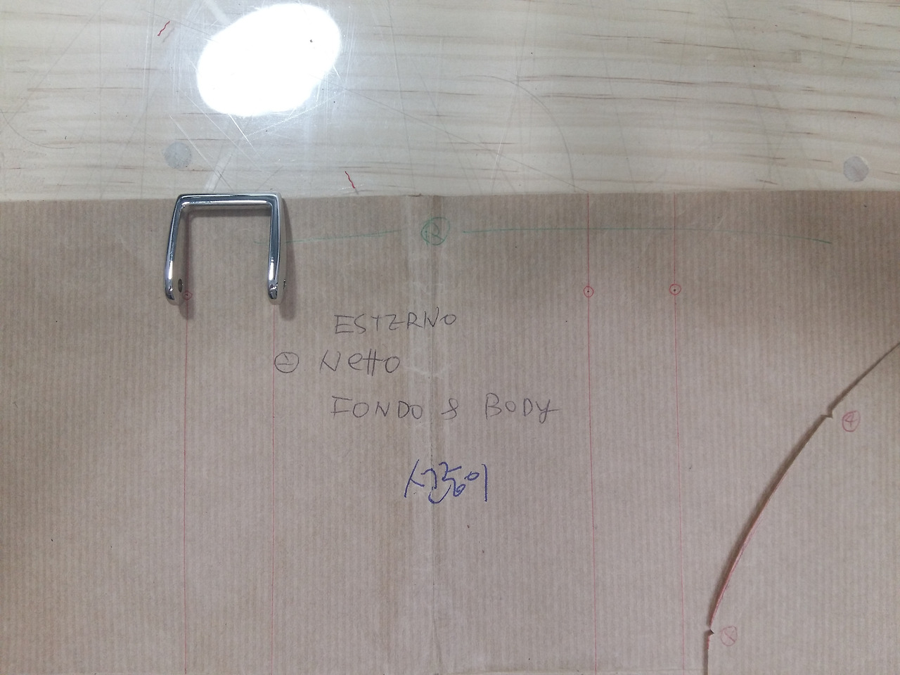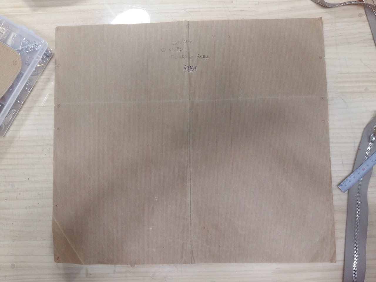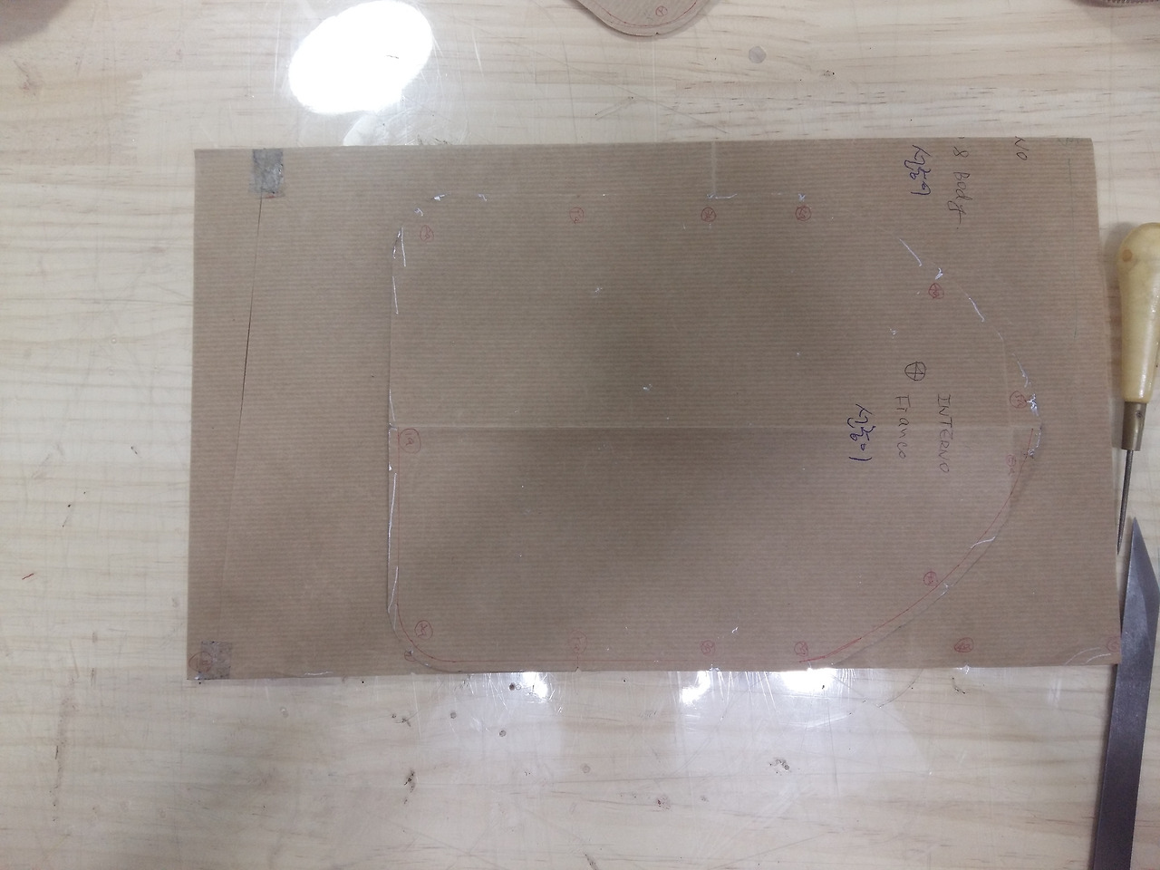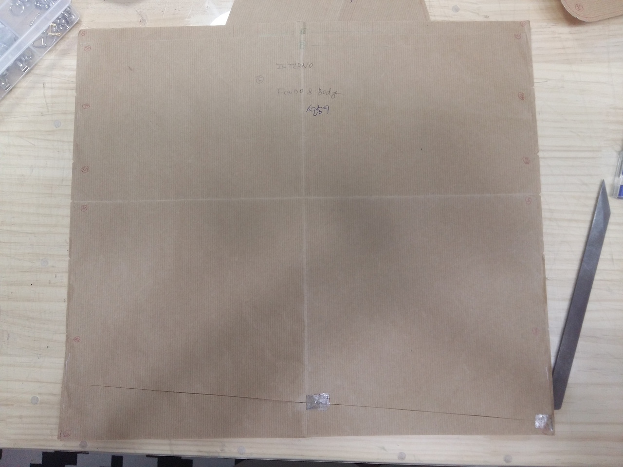 형지는 밑판 절반을 포함한 가방의 절반만을 만들고 실제 재단 시에 전체를 통으로 자르도록 하겠습니다.