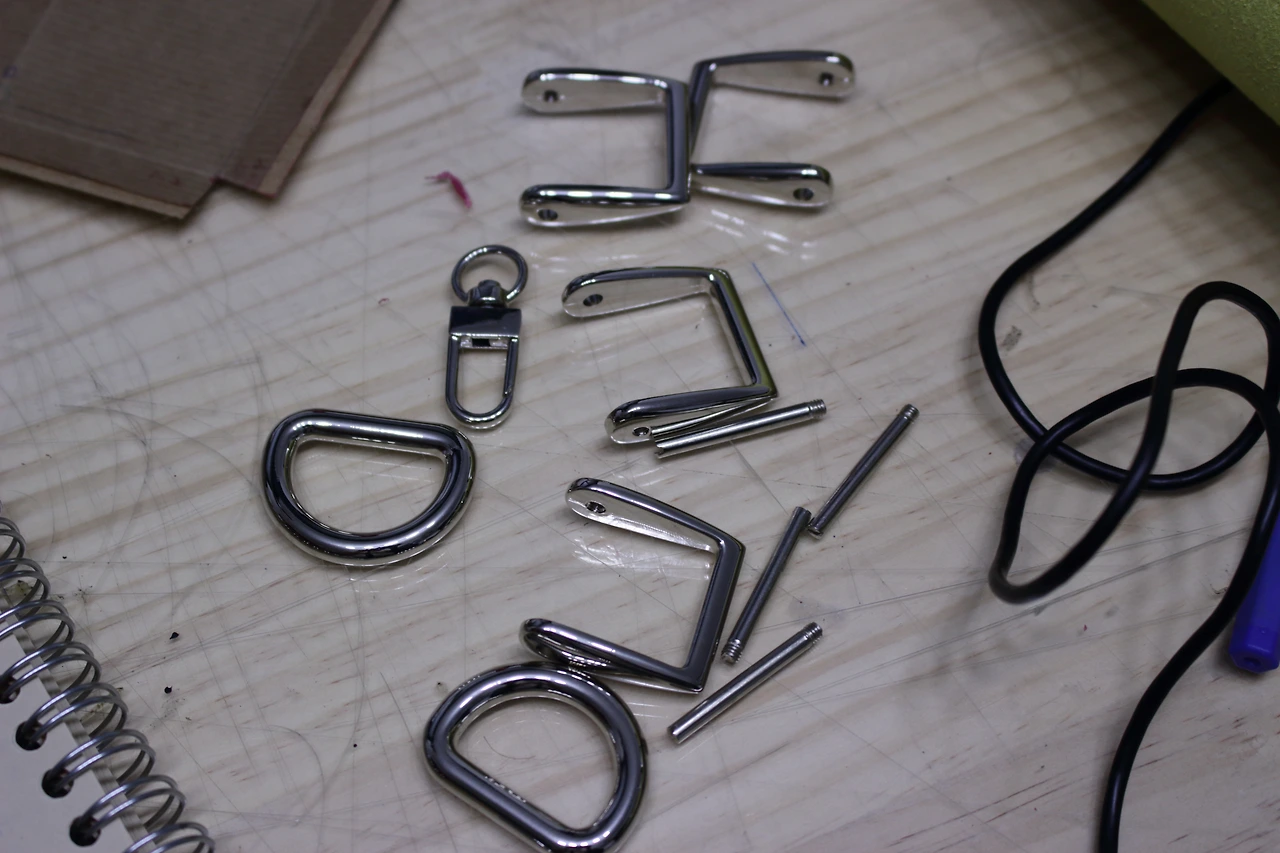 파이핑, 스트랩, 어깨 스트랩의 최종 길이를 지금은 정할 수 없으니 가죽 재단 시에 미리 넉넉하게 재단해 놓아주세요.