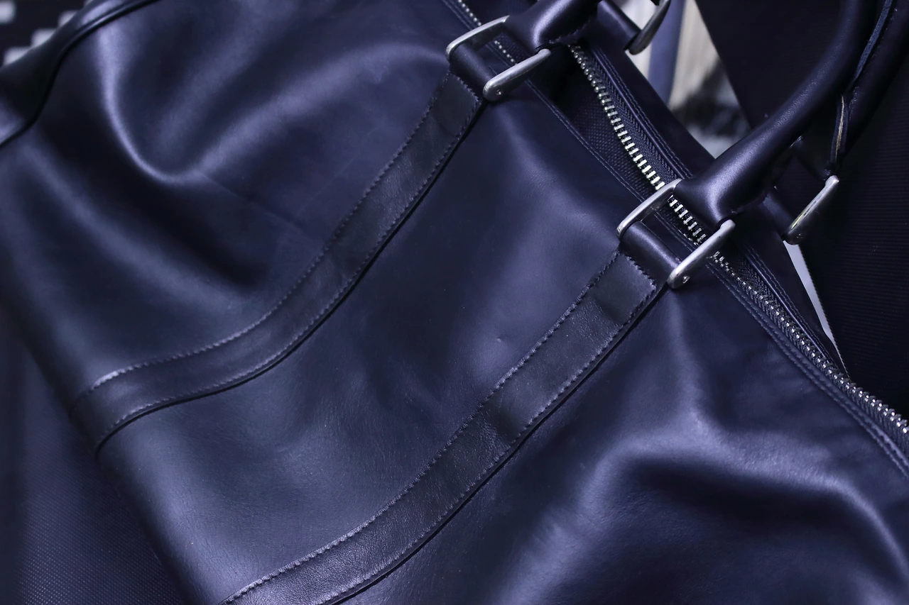 이 보스턴 가방은 전체를 스트랩으로 덧대어서 미적인 효과도 있고 가방을 지지해 주는 역할도 하겠습니다.