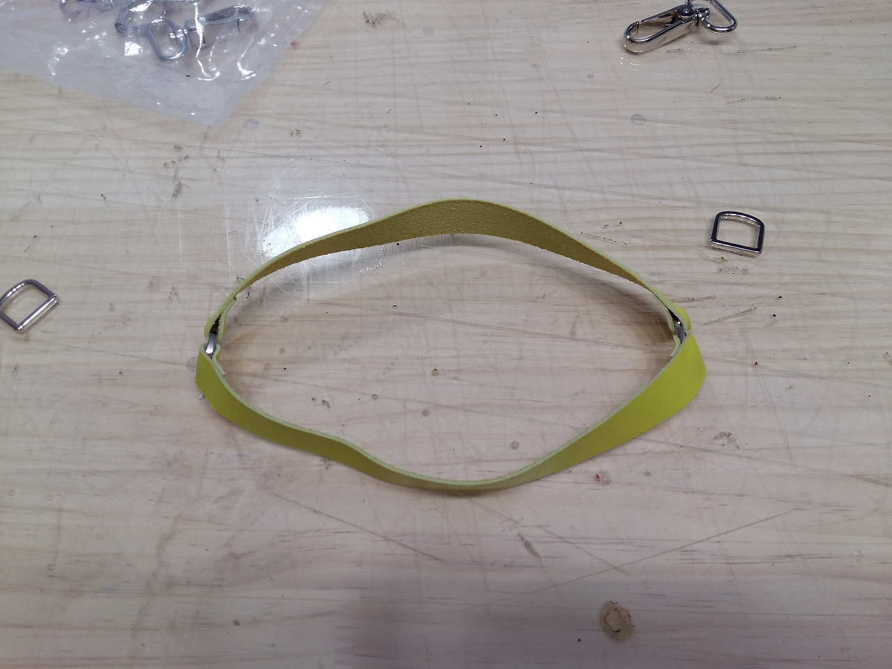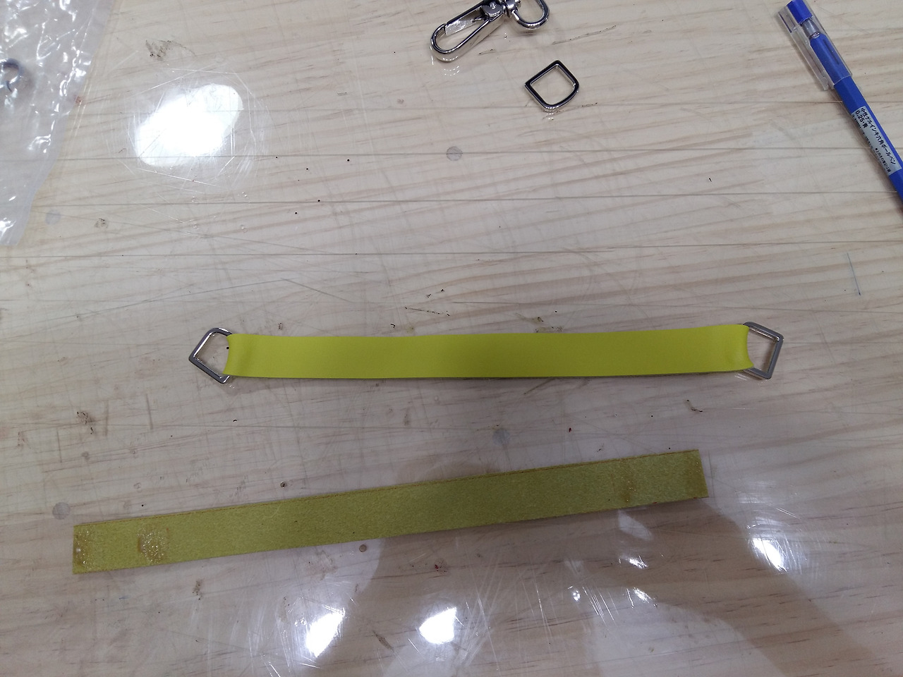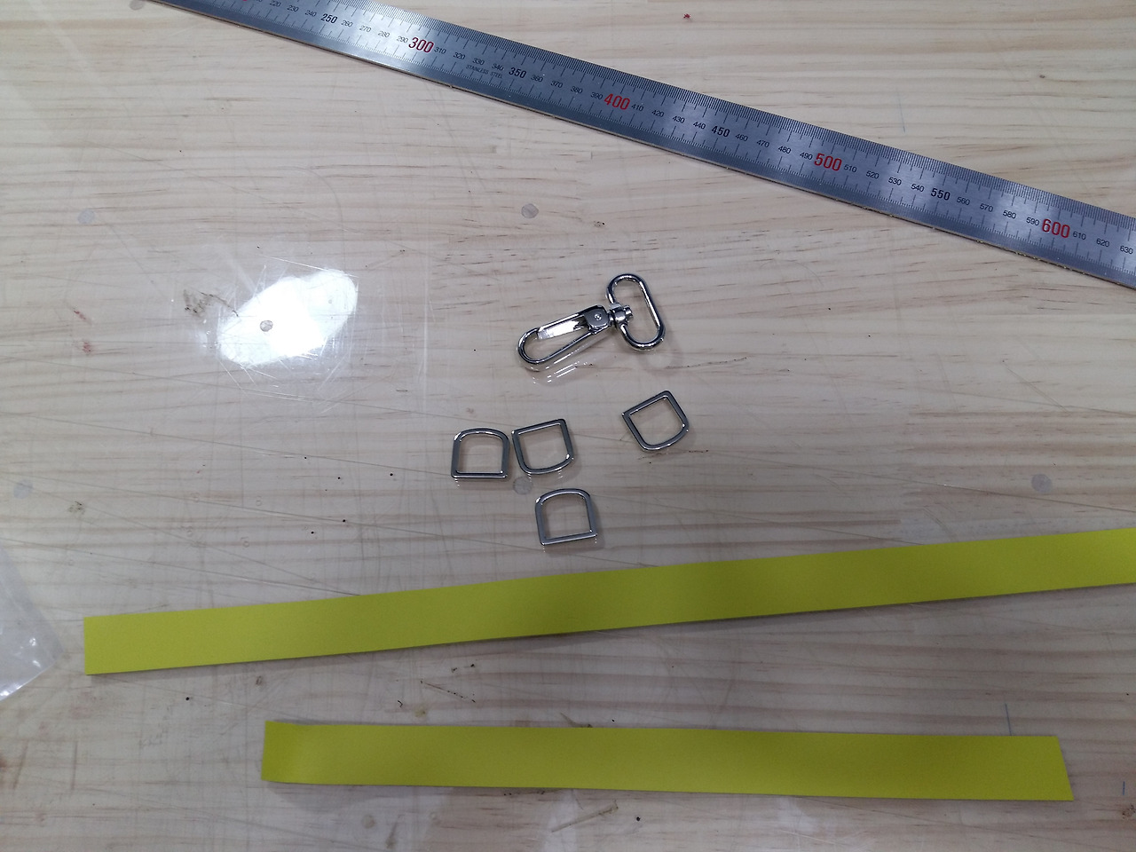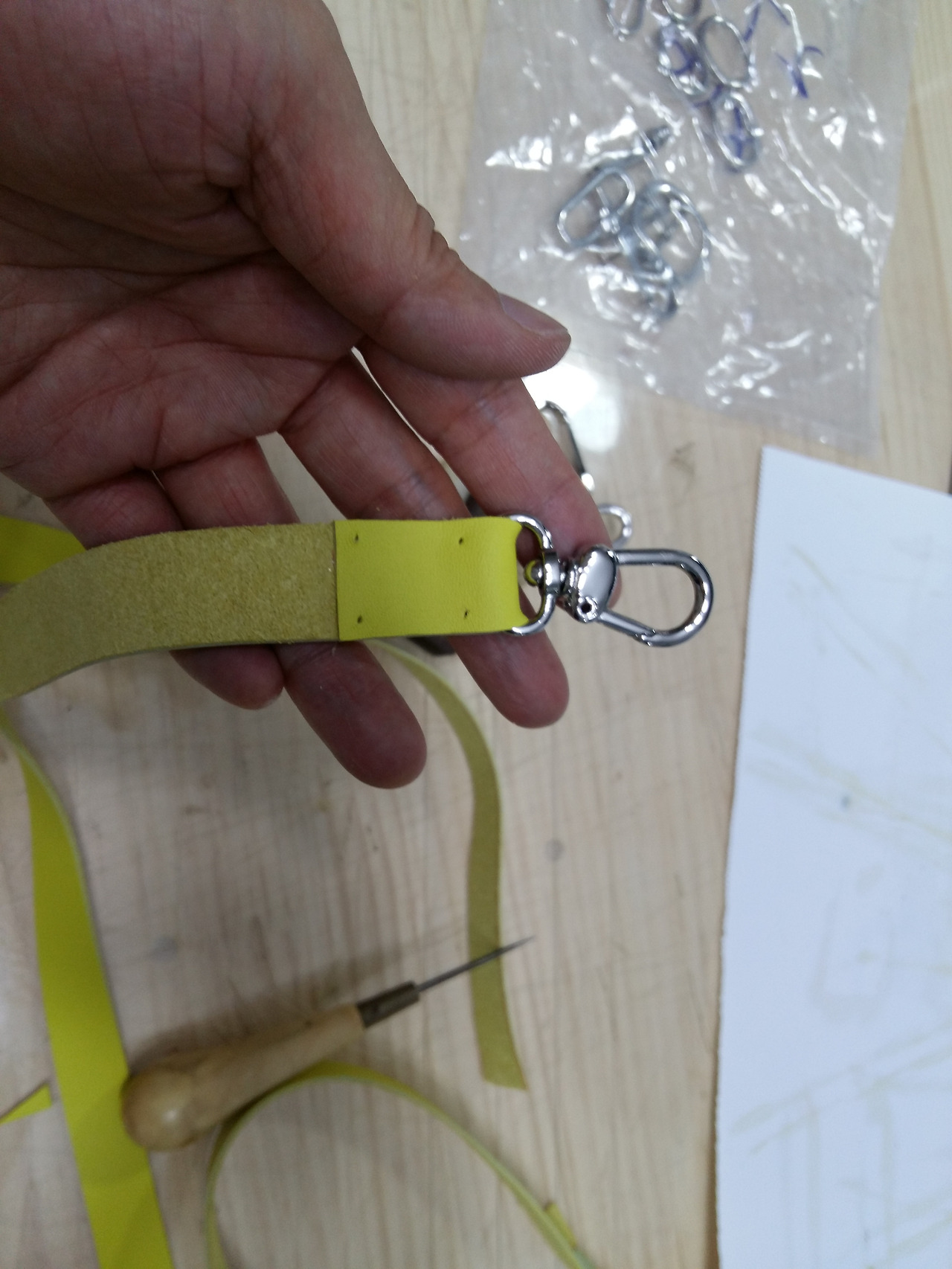 스트랩을 연결하는 연결부위의 부자재로 디링(알파벳 D자처럼 생긴 링)을 4개, 그리고 리드 줄과 몸체를 연결하기 위한 개고리(Hook인데요. 우리나라에서는 개목걸이에 많이 한다고 개고리라고 하네요.)를 1개 준비해 주세요.
