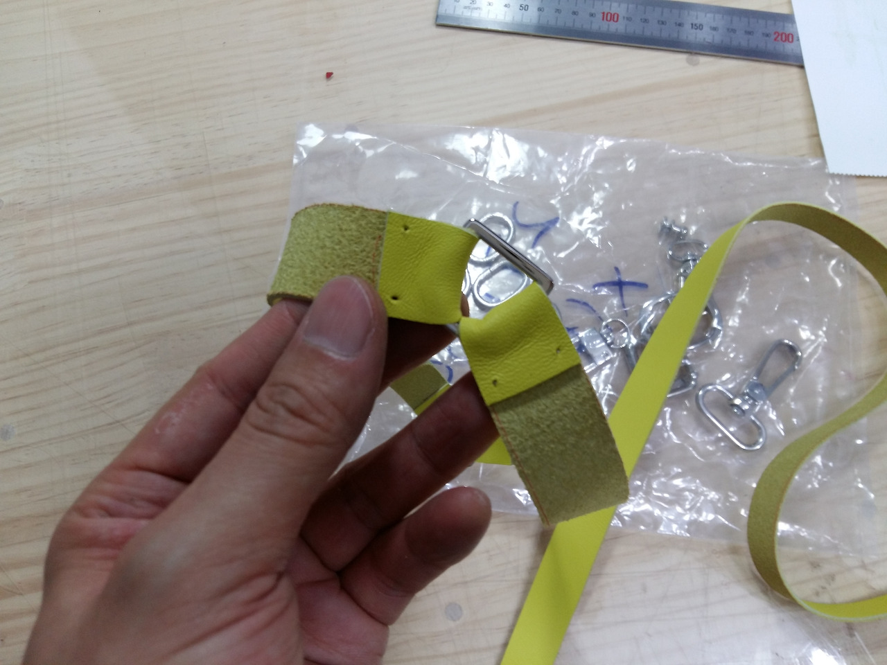 디링이 결합되어 가죽이 겹치는 부분은 모두 같은 방식으로 구멍을 내어 주세요.