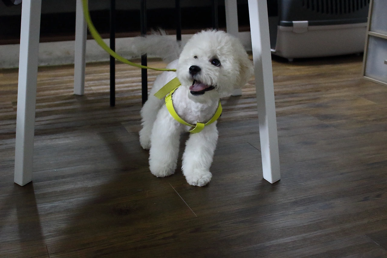 그러나 예쁘게 만들었지만 견주님의 정성도 모르고 처음에는 낯설어서 막 물고 뜯을 수 있으니 너무 당황하지 마세요. 어느 순간 이 줄을 만지고 있으면 산책 가는 걸로 알고 꼬리를 흔들고 발광(?) 할 거예요.