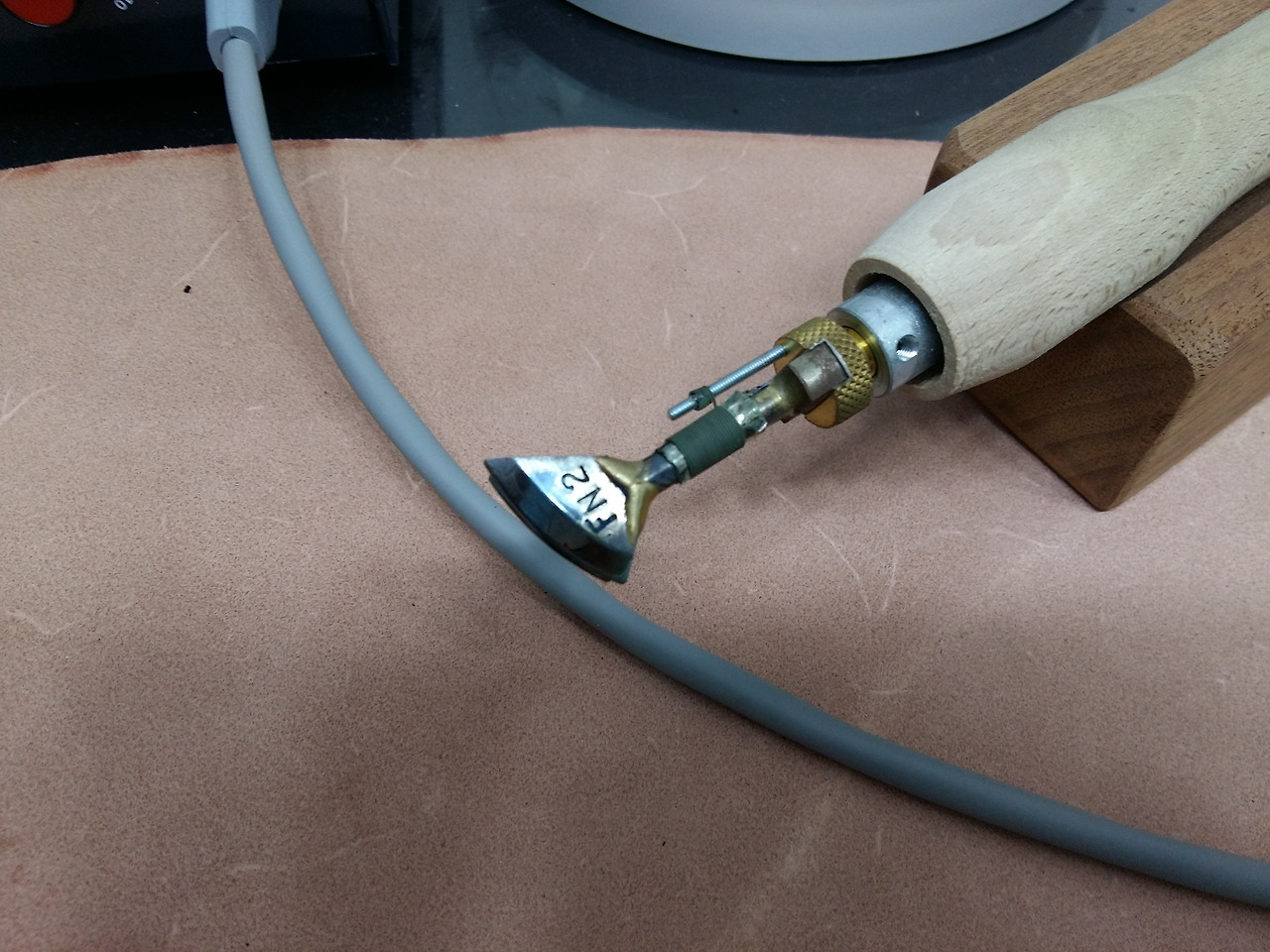 즉, 칼로 재단한 가죽 단면은 아무래도 끝이 날카로울 수 있고요. 이것을 크리징 인두 혹은 팁의 홈으로 해서 그 재단면과 끝을 둥글게 만드는 효과를 가지게 됩니다.