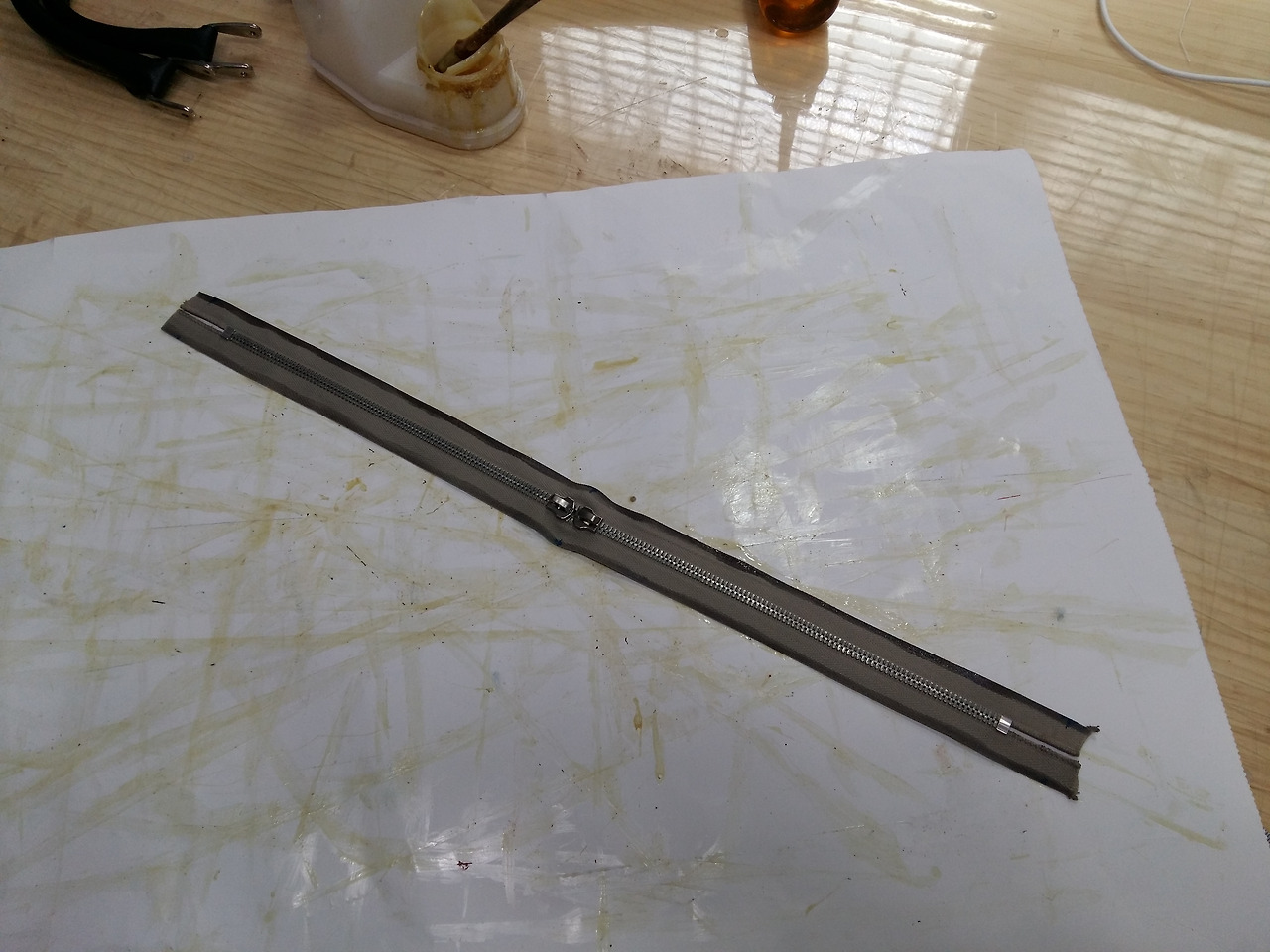2. 아예 지퍼가 들어갈 홈을 만들어서 그 위에 지퍼를 놓고 접착하기도 합니다.