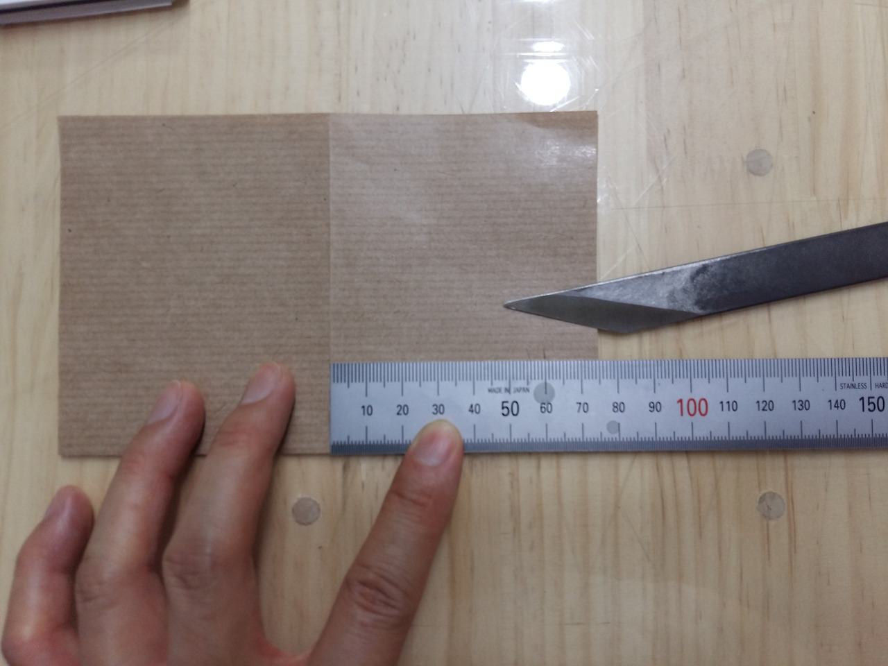 그리고 이 선을 기준으로 다시 절반을 재단해 주세요.