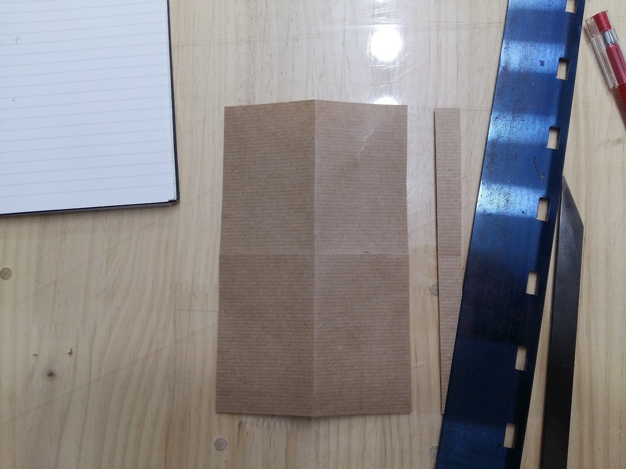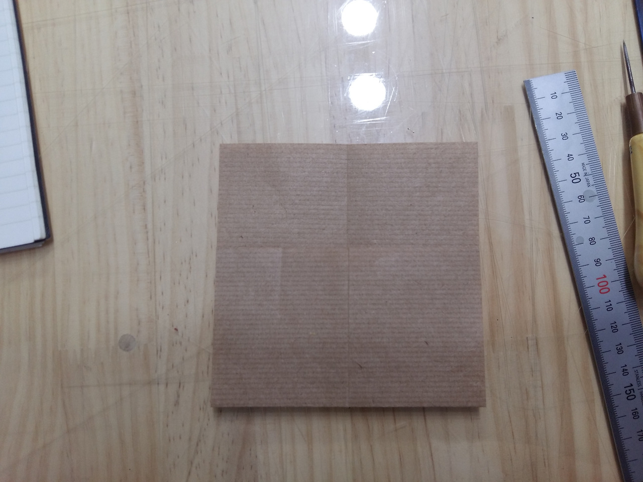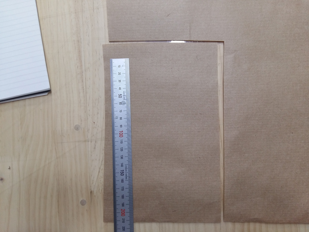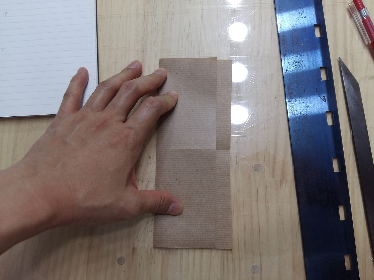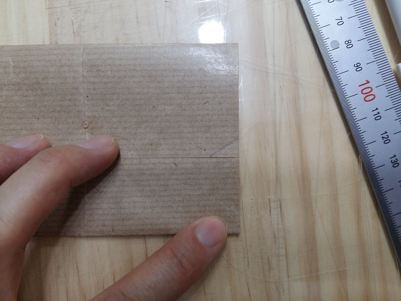 먼저 접혀서 앞판이 뒤판과 결합될 지점입니다. 저는 앞판 세로를 7센티로 정해기에 마킹할 위치는 그 두배인 14센티가 되겠습니다.