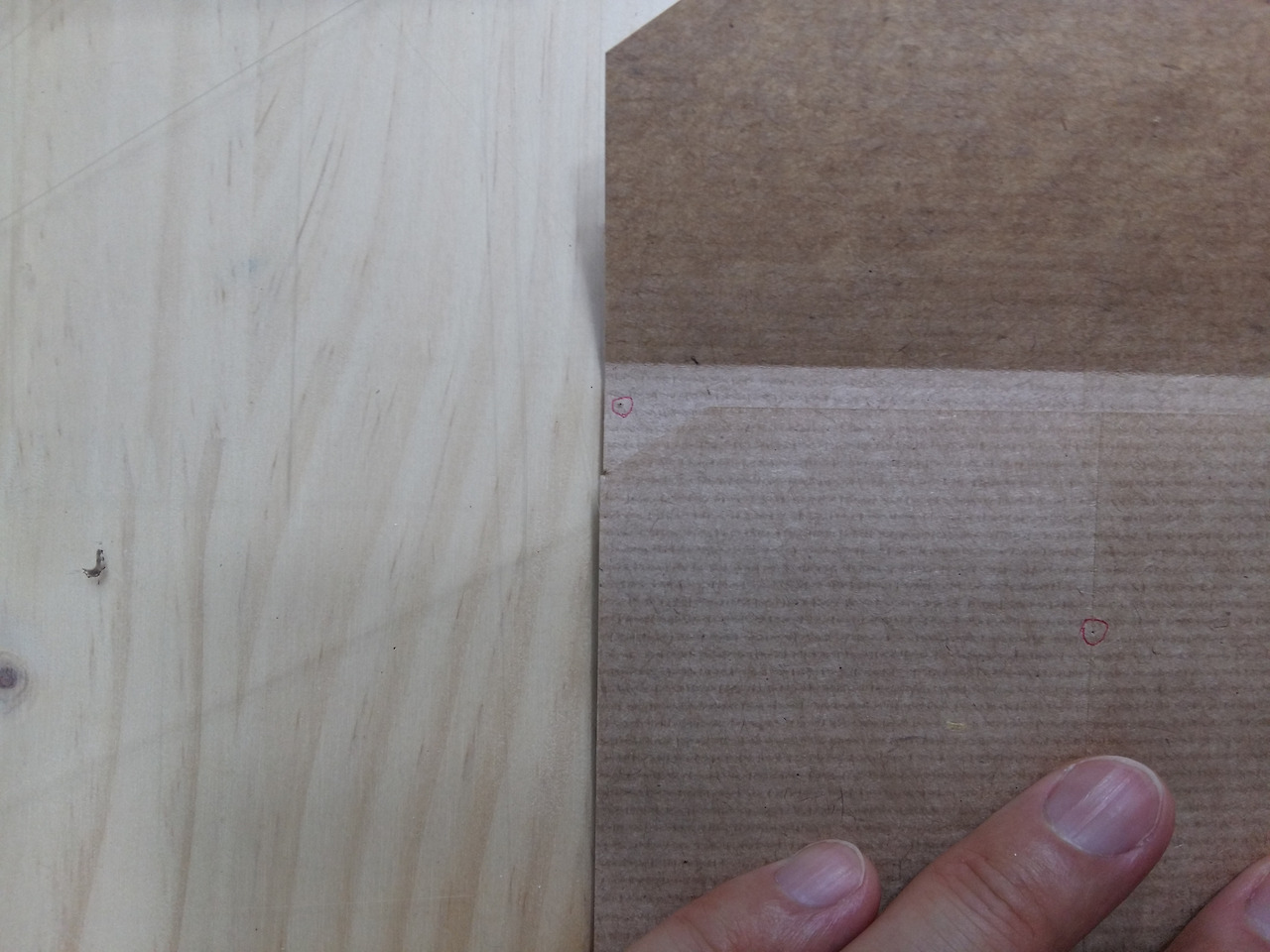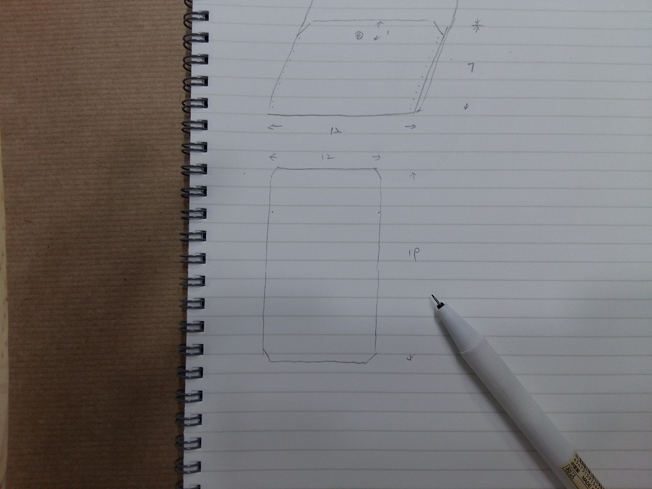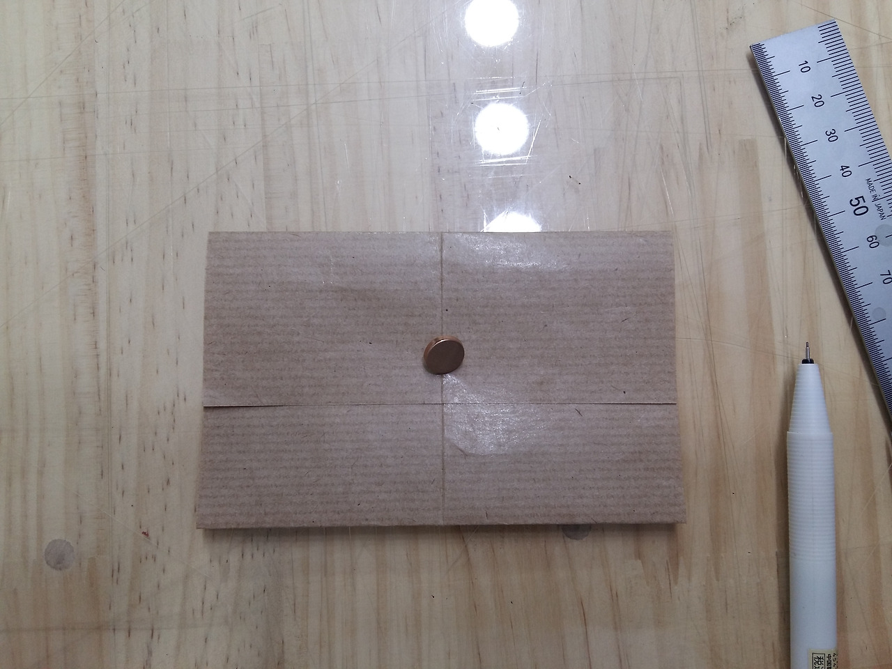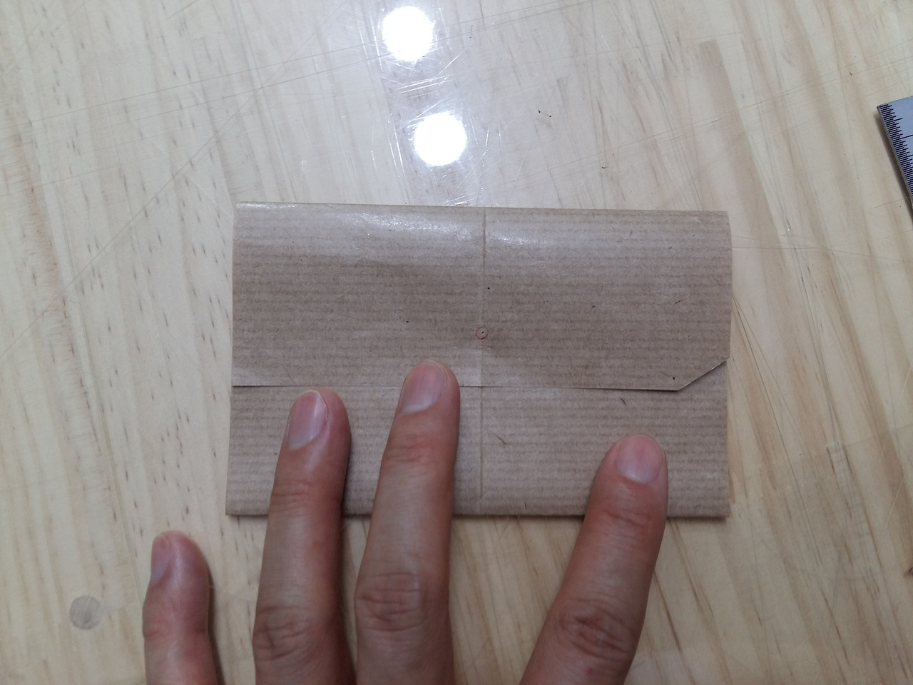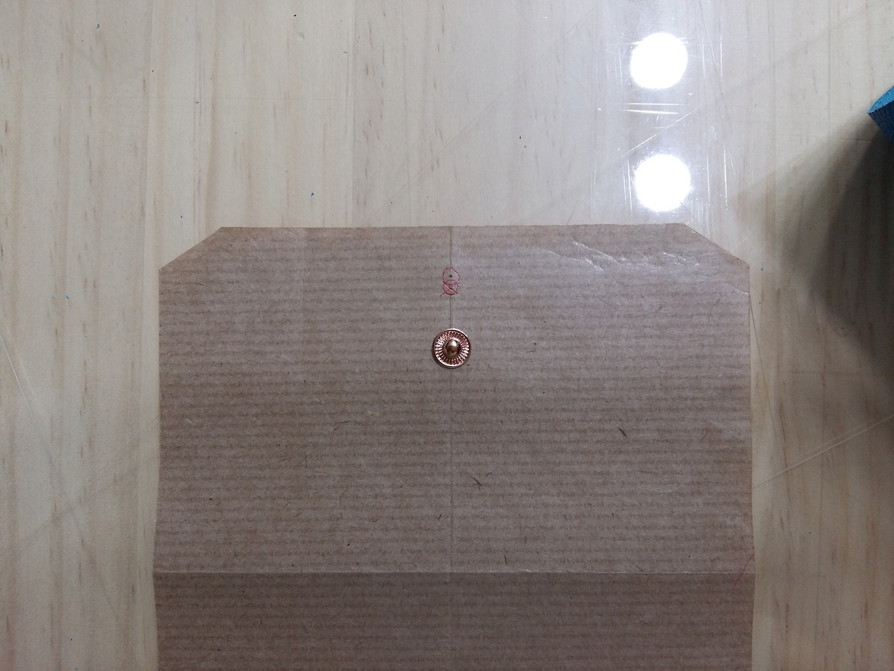 먼저 접혀서 앞판이 뒤판과 결합될 지점입니다. 저는 앞판 세로를 7센티로 정해기에 마킹할 위치는 그 두배인 14센티가 되겠습니다.
