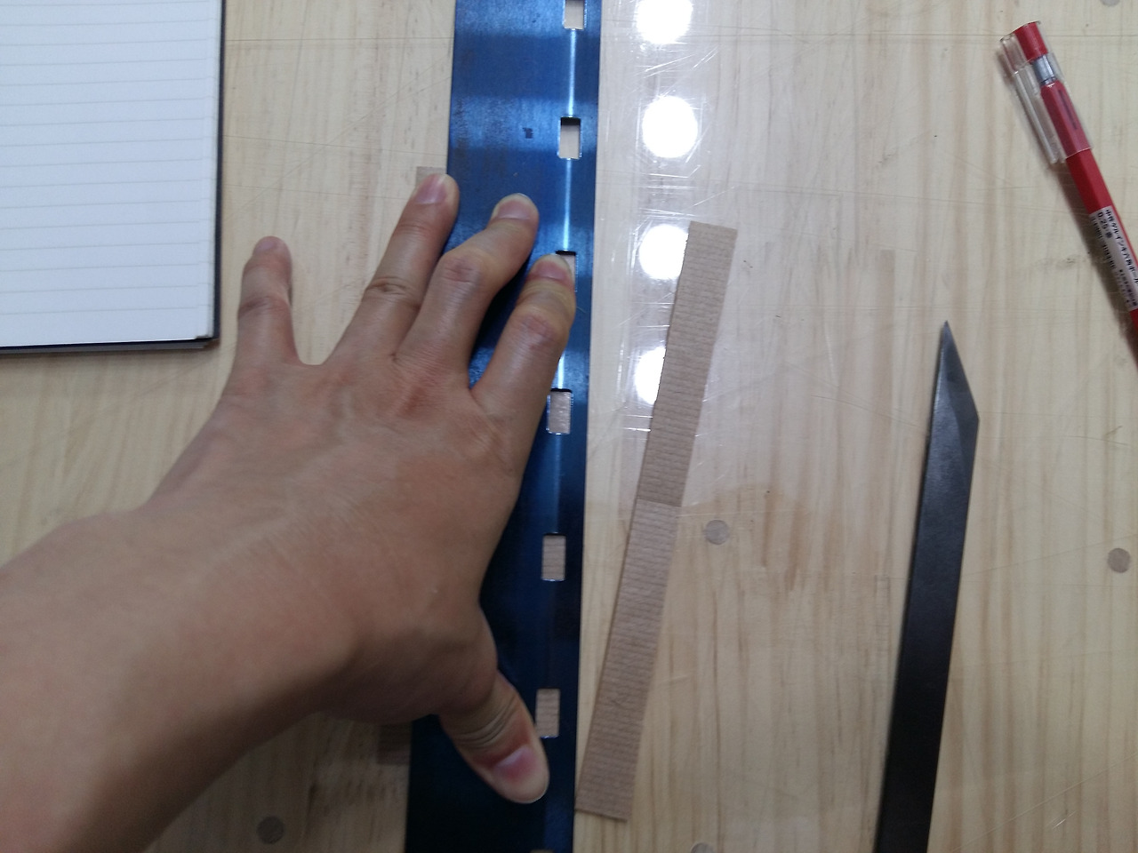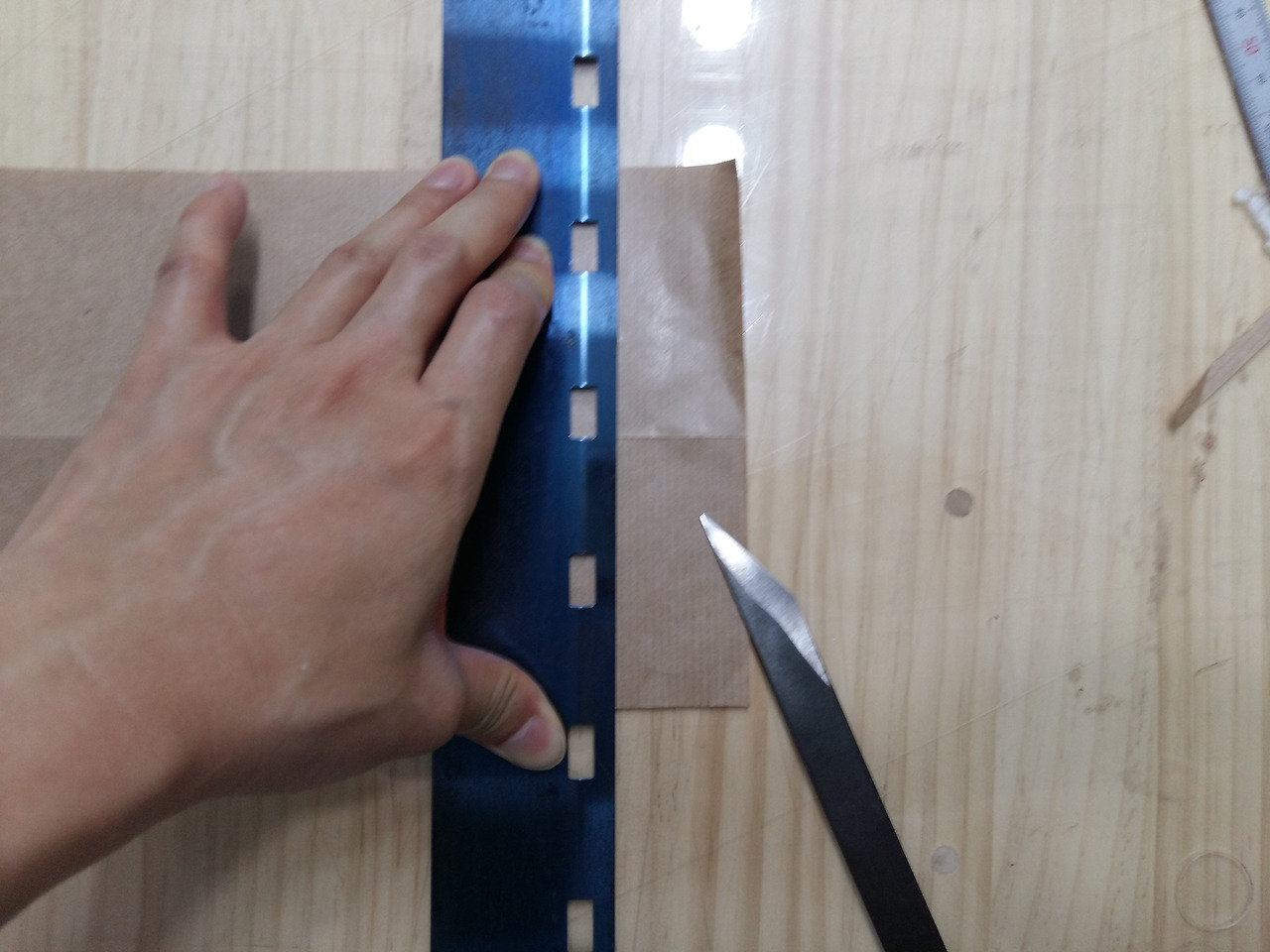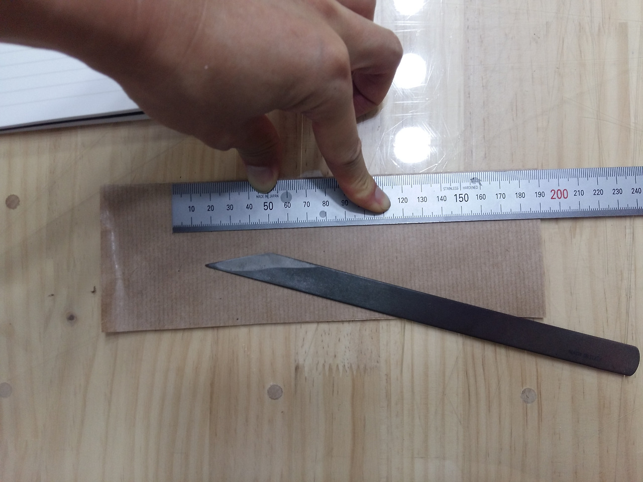 이제 원하는 길이를 직각 재단한 면을 기준으로 해서 칼집으로 표시해 주세요.