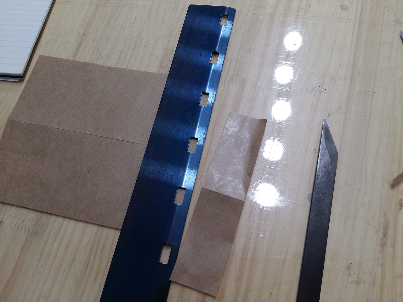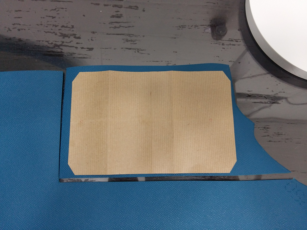 형지를 올리시고 송곳으로 형지대로 그어 주시고 재단하시면 됩니다.