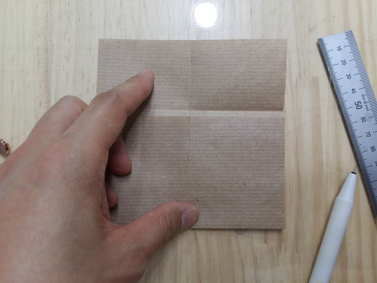 이렇게 되면 처음 접은 중심선과 이렇게 반 접은 중심선도 직각으로 만나게 됩니다.