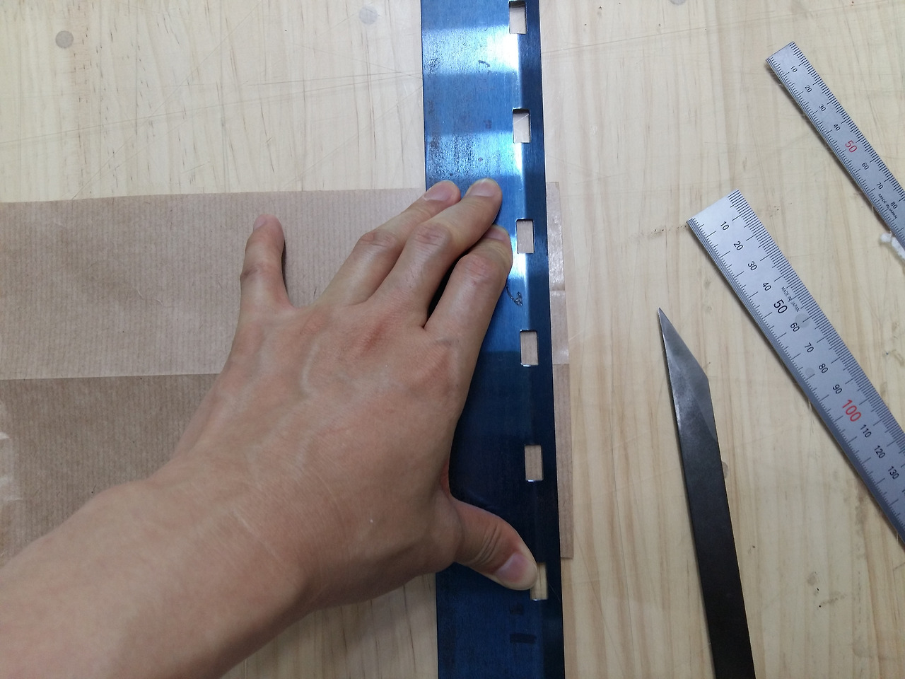 형지의 스냅핑 위치로 가죽에 표시해 주세요.