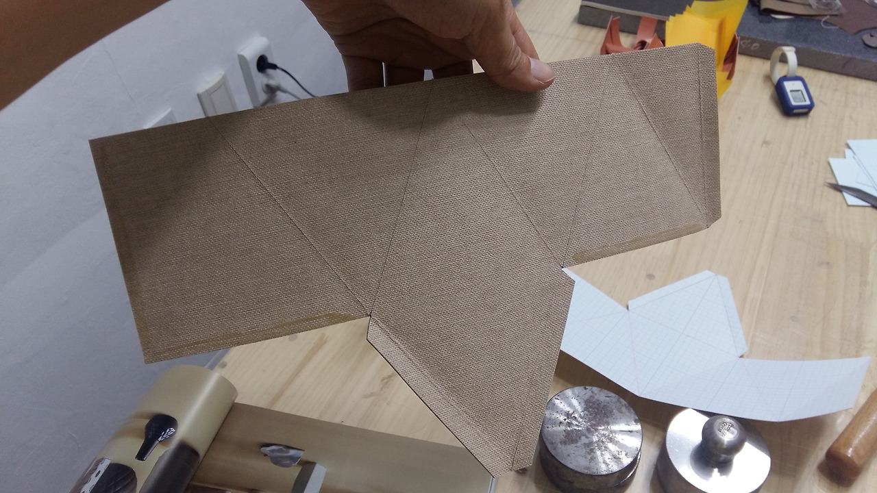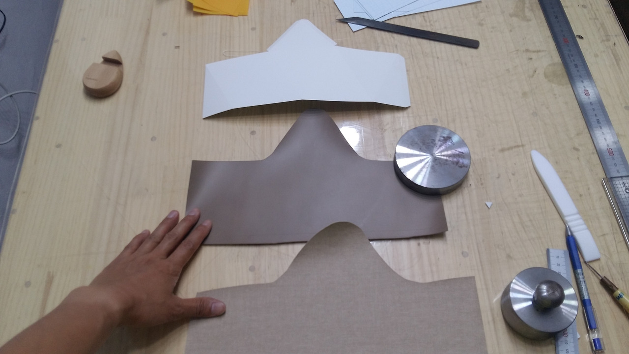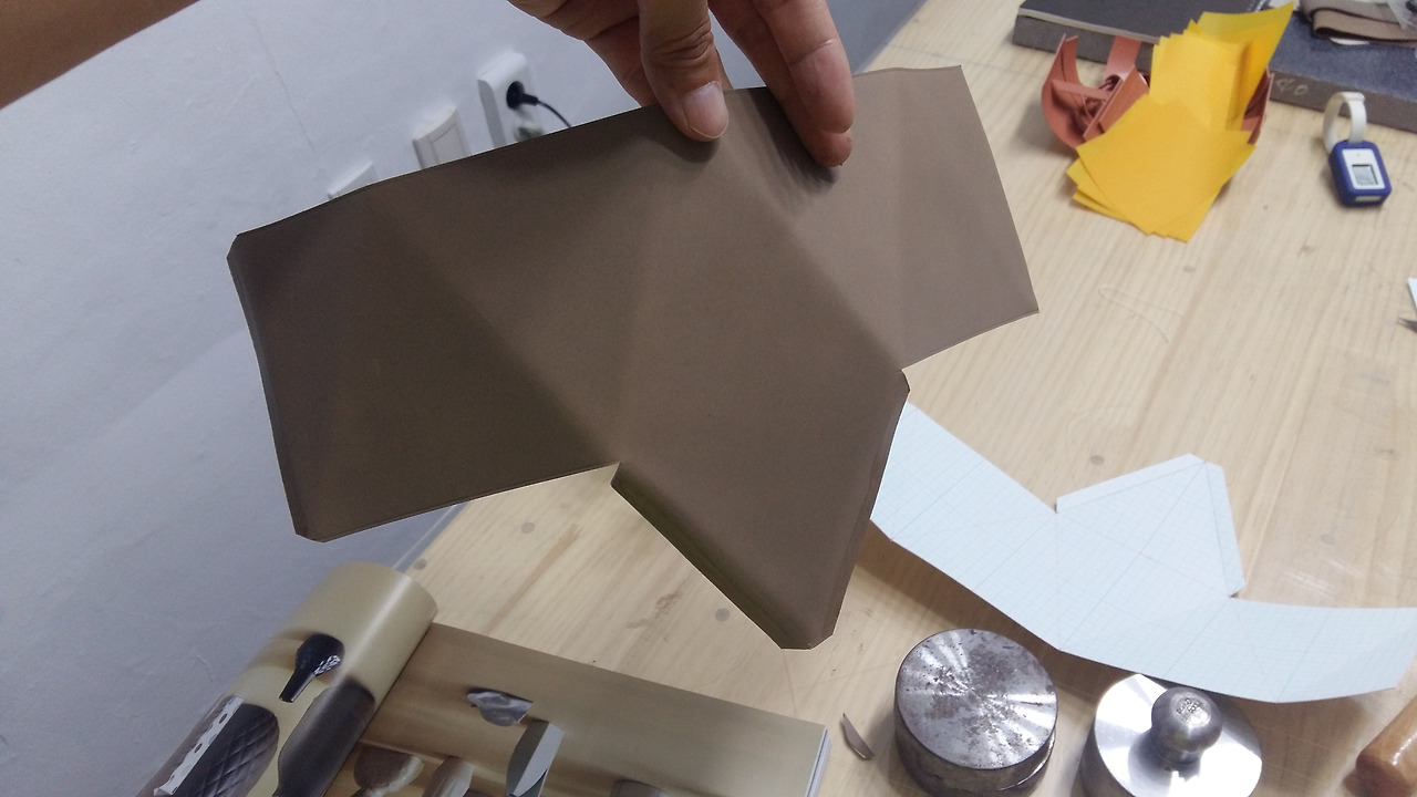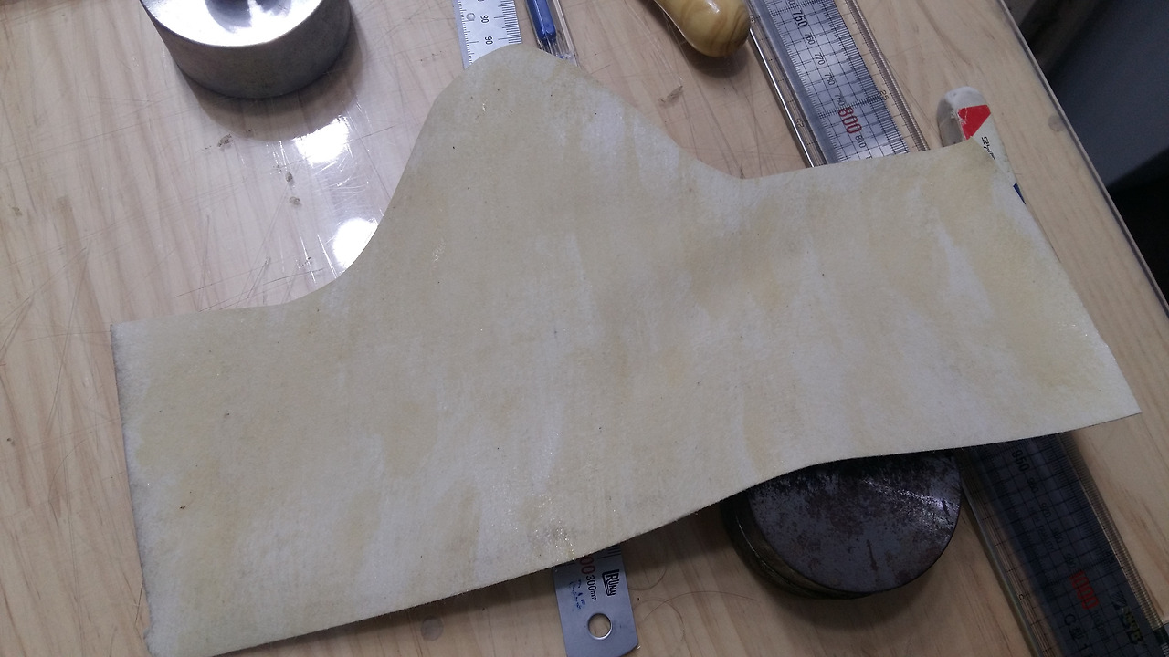 형지가 만들어졌으니 이제 가죽을 재단해 보겠습니다.