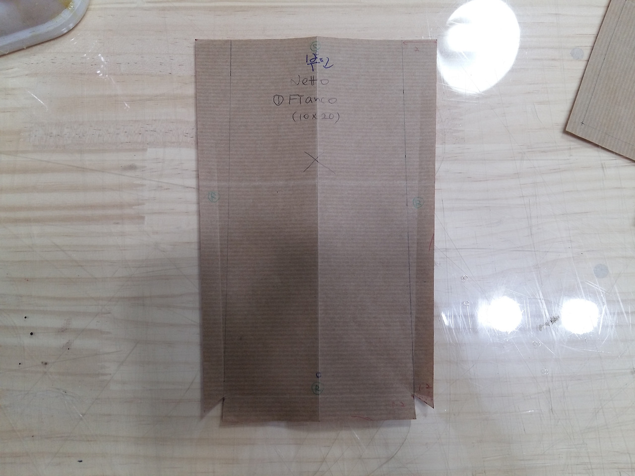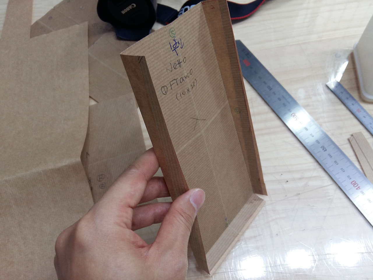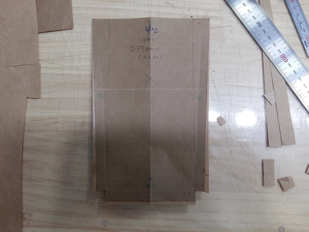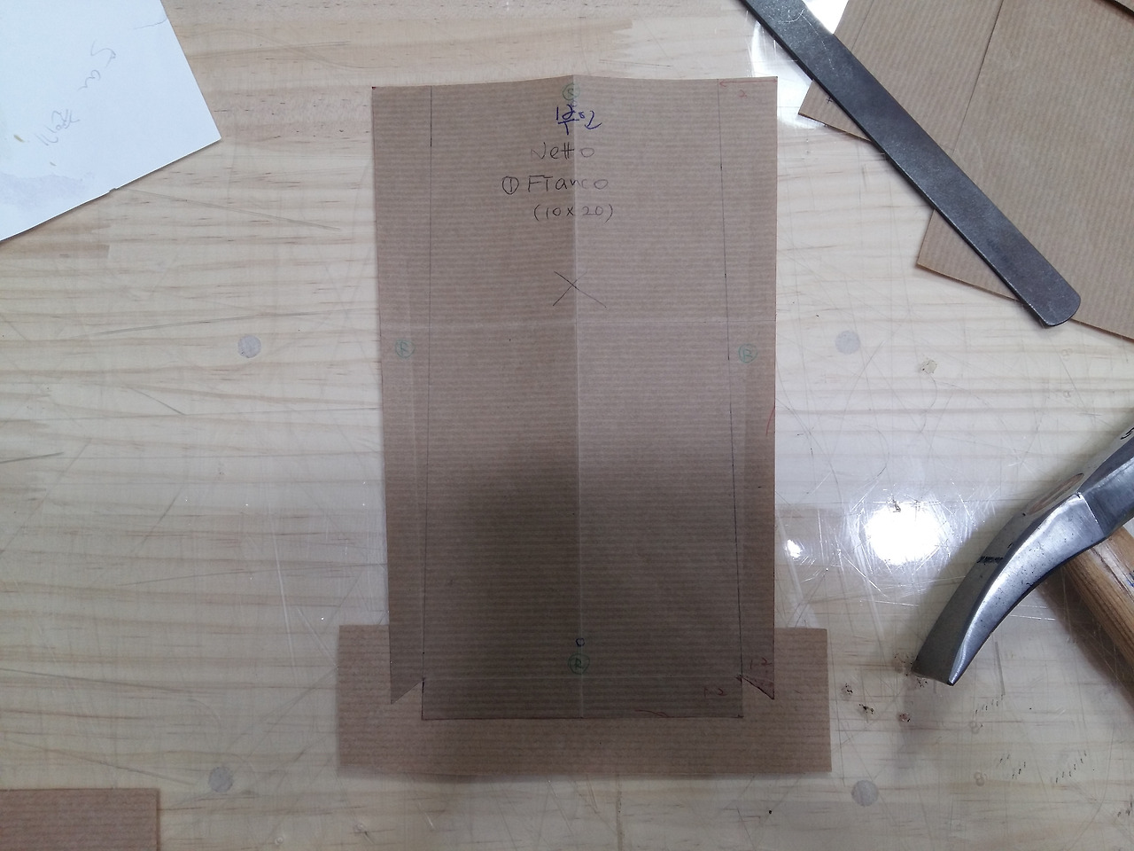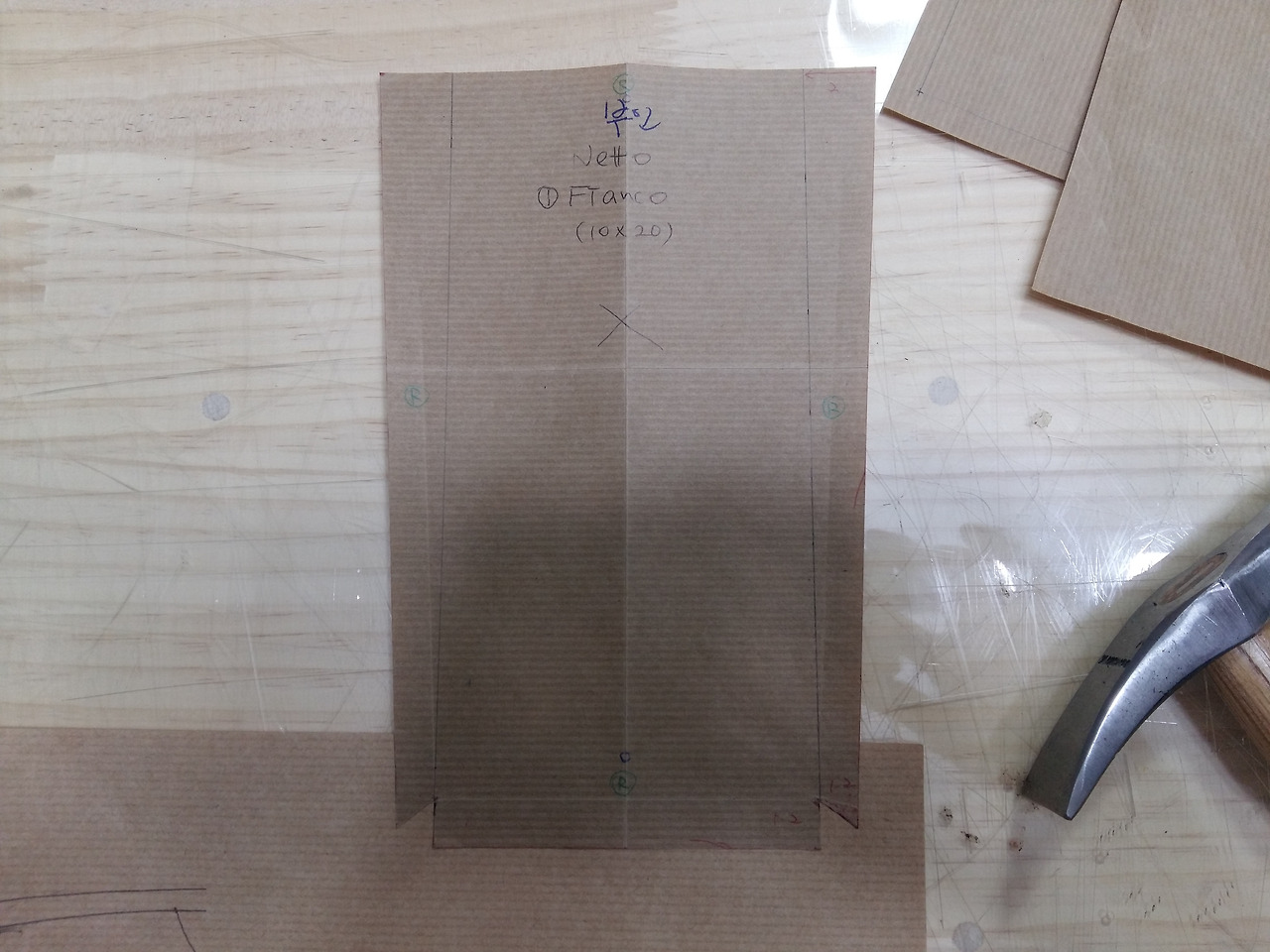 형지에 종이를 덧댄 뒤 다시 패턴을 떠 보겠습니다.