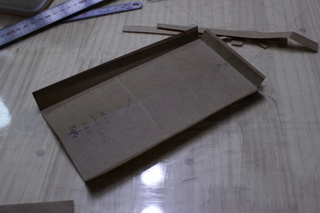 사진처럼 옆판에서 아랫의 꺾여 있는 홈 부분이 실제로 종이를 조금씩 잘라 가면서 만드는 각인데요.