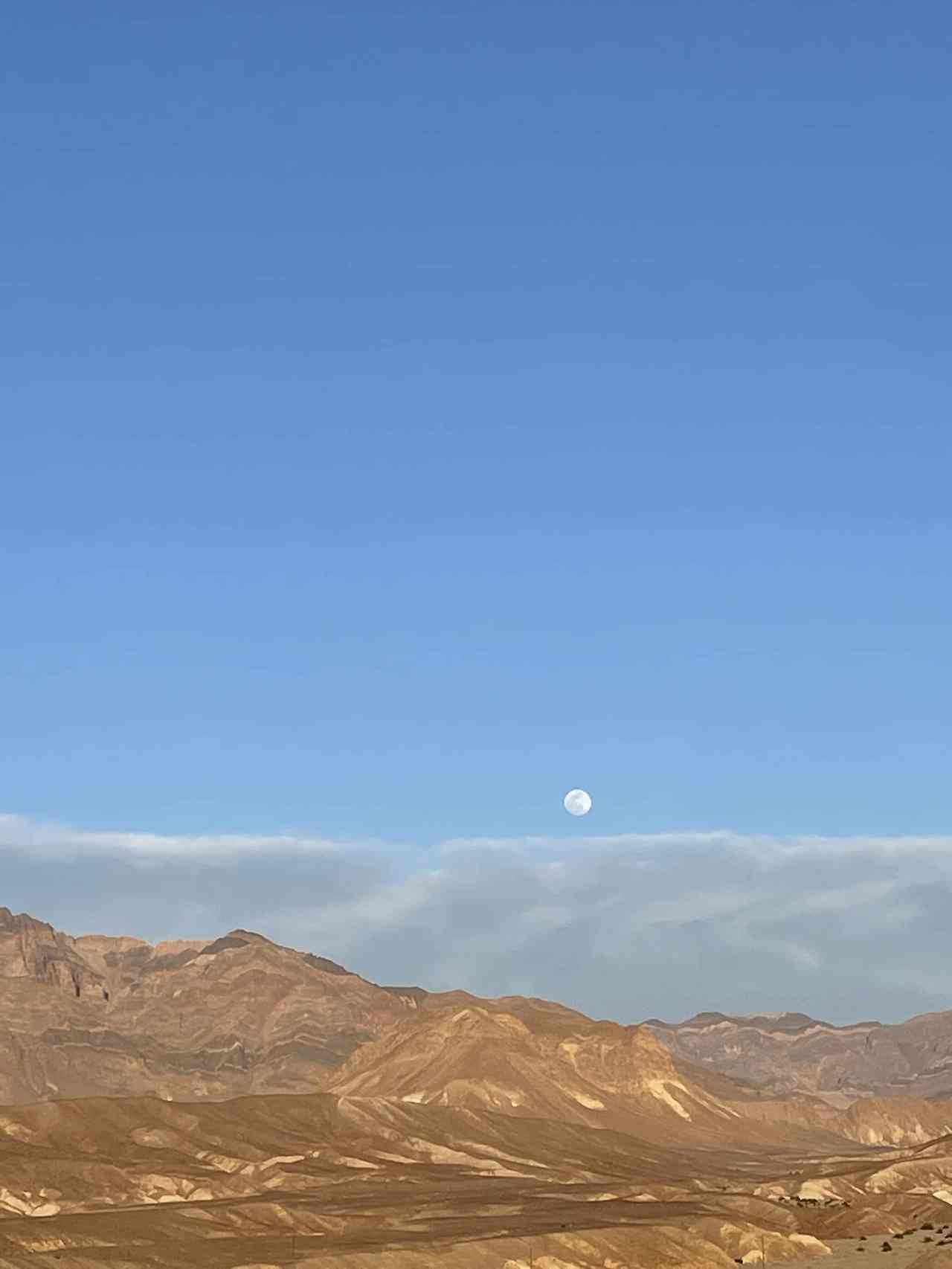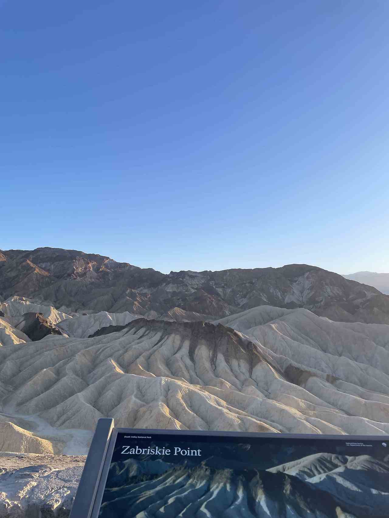 그 후, 데스 밸리의 하이라트라고 생각했던 자브리스키 포인트(Zabriskie Point)에 도착했다. 이곳에서 선셋을 보고 싶어 시간에 맞춰 도착할 수 있었다. 자브리스키 포인트는 데스 밸리의 대표적인 전망대 중 하나로, 넓게 펼쳐진 사막 경관과 톱니 모양의 산맥, 퇴적암 지대를 감상할 수 있는 장소다. 붉게 물든 하늘과 넓은 사막이 마치 그림처럼 펼쳐져 있었고 해가 지면서 암석들의 색이 바뀌는 모습은 그야말로 말로 표한할 수 없을 만큼 아름다웠다.
