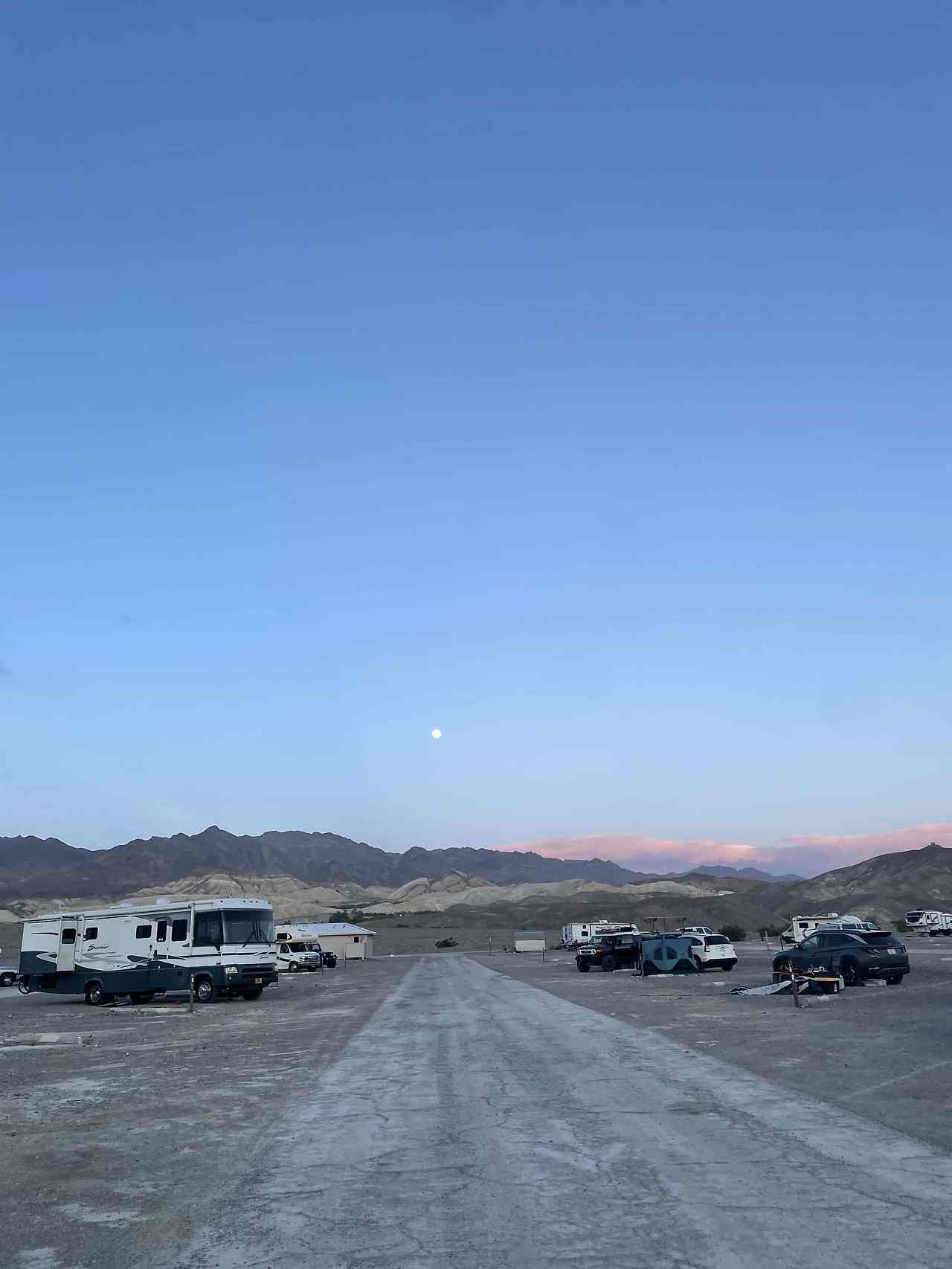 캠핑장의 환경에 비해 경치는 정말 환상적이었다. 데스 밸리의 한가운데서 사방이 탁 트인 뷰를 바라보며 모든 방향을 조망할 수 있었다.(물론 그늘은 없었다.) 캠핑 경험이 전무했기 때문에 나머지 여행을 마친 후에 텐트를 치기로 결정했다. 캠핑장에 도착했을 때는 오후 1시 정도였기 때문에 여유가 충분하다고 생각했다.