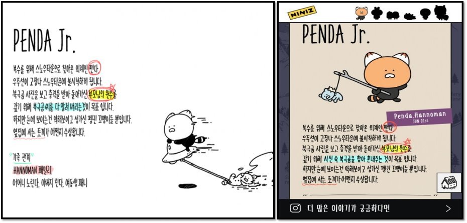 팬다 주니어의 비판 여론 논란 전후 캐릭터 스토리 변경