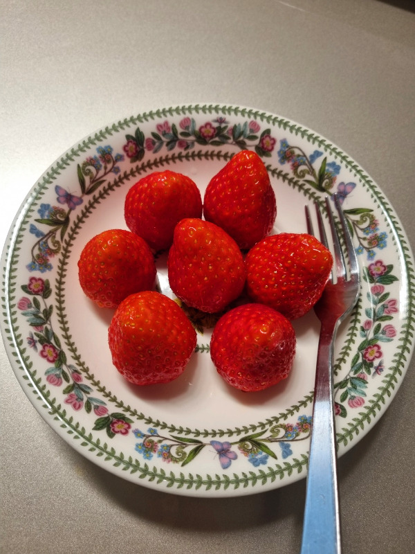 엄청 싼 가격은 아니지만 드디어 이번엔 내 몫이 생겼다. 돌아와서 갓난아기 궁둥이 만지듯 조심스레 씻어 꼭지를 딴다. 자신의 위엄을 자랑하듯 진하고 달콤한 향기가 코끝으로 존재감을 뽐낸다. 이번엔 너를 스쳐 보내지 않으리. 접시에 담아 놓으니 대접받는 느낌이 든다.