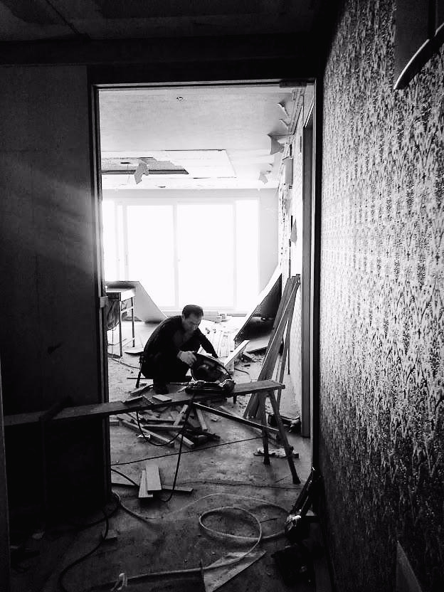 자그마하고 연약한 체구의 아저씨가 철거를 하고(다 요령이 있는 거라고 하시 내 도움을 한사코 거절하셨다), 목수 아저씨들이 며칠에 걸쳐 완성도 높은 목공 작업을 하고, 페인트팀이 페인트 작업을 공들여하고, 도배사들이 벽면에 실크벽지를 입히고, 타일 설치 전문가들이 짙은 회색의 이탈리아산 타일을 깔고, 베테랑 가구 설치 전문가가 붙박이 가구를 설치하고 등등…이런 나날들이 바쁘고 평온하게 흘러갔다.