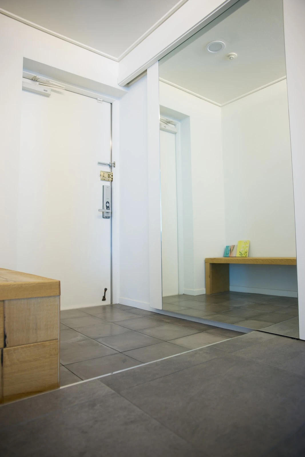 또한 나는 여백 없이 꽉 들어찬 느낌을 안 좋아한다. 집에 들어오자마자 숨 막히는 듯한 답답한 느낌을 느끼고 싶지 않았다. 그래서 신발장을 거실로 향하는 복도 위로 옮기고 기존 신발장 자리에는 벤치를 만들어 두었다. 신발장은 현관에 있는 것이 당연하다고 생각하지만, 거실 위에 있는 신발장을 두면 편리한 점이 더 많다. 거실 위 신발장은 슬리퍼 등을 구겨신을 필요 없이 맨발로 편하게 신발을 꺼낼 수 있다. 바닥에 흙 좀 떨어지는 것쯤은 청소기가 있으니 큰 수고가 아니다.