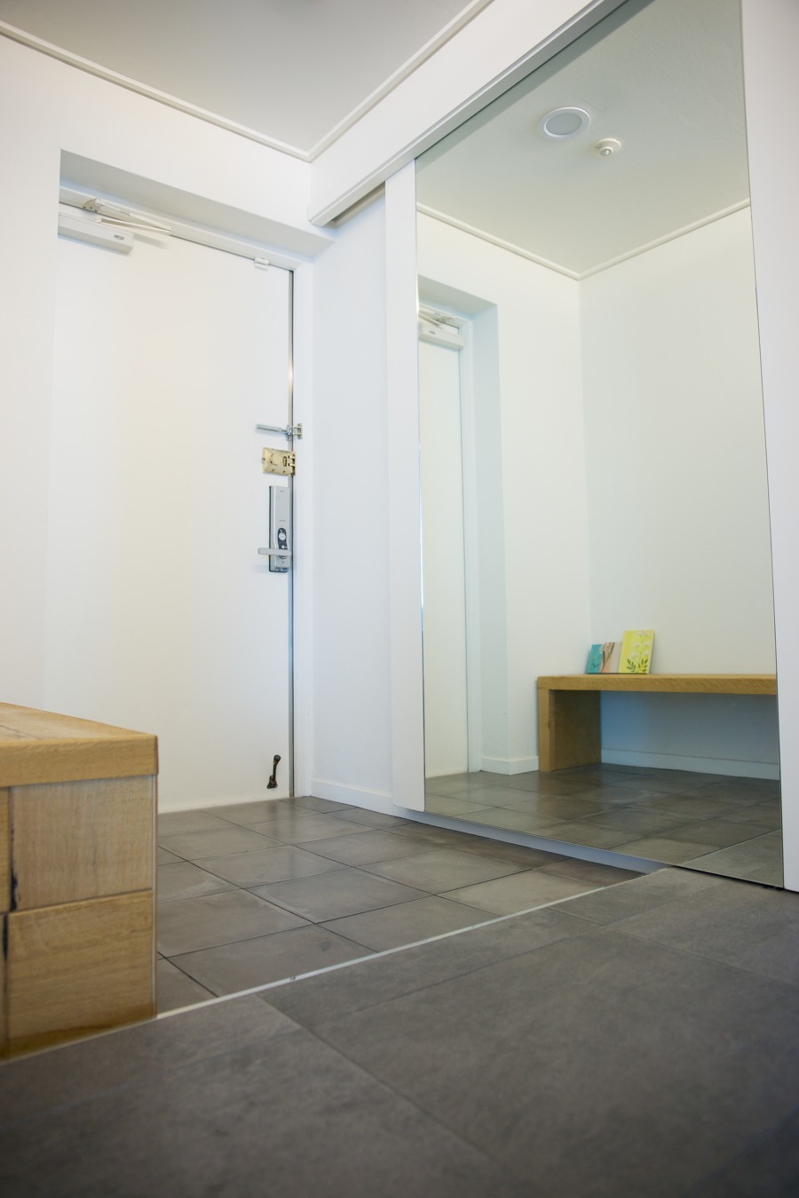 이를 위해 무엇보다 따뜻하고 환한 자연빛이 현관 공간까지 그대로 도달하기를 원했고, 가로 막히는 느낌 없이 시야가 시원하게 트이는 현관 공간이 되기를 원했다. 또한 일반적으로 사람들이 필요를 잘 깨닫지 못하고 살아가지만, 나는 현관 공간에 꼭 필요하다고 생각하는 착석과 수납의 편의성이 증대되기를 원했다.