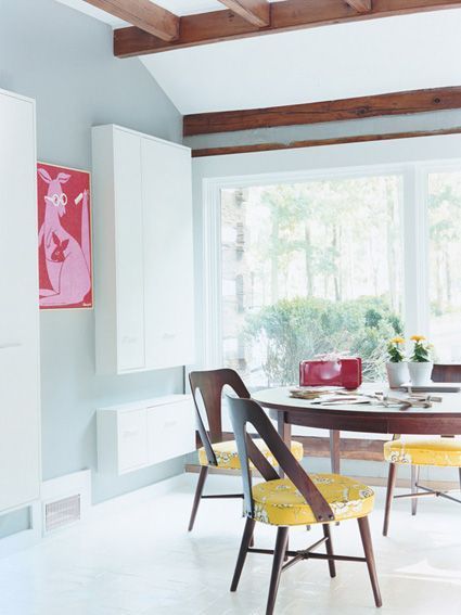 진출색과 후퇴색을 인테리어 디자인에 활용하면 같은 면적의 공간이라도 한층 넓게 혹은 좁게 인식하도록 만들 수 있다.