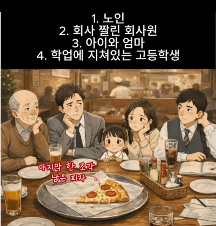 마지막 한 조각 남은 피자, 누구에게 제일 먼저 주어야할까?