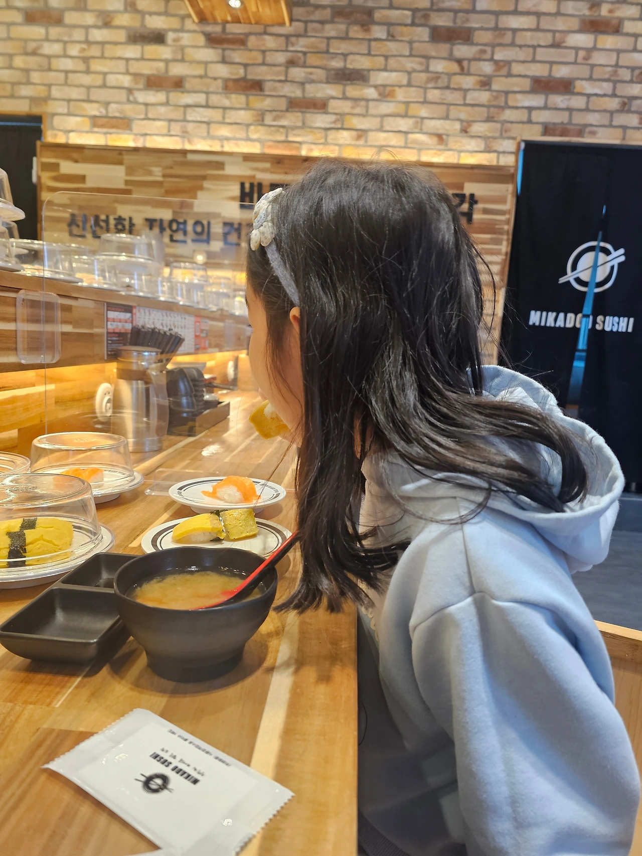 지난한 감기 치례를 하고 있는 첫째를 데리고 병원에 갑니다. 유치원을 스킵할 수 있다는 사실에 마냥 신이 난 그녀는 아빠와 초밥집을 간다는 사실에 함박웃음을 지어 보냅니다. 한 접시에 2300원이던 23000원이던 이 시간만큼은 별로 중요하지 않습니다. 난 그녀가 맛있게 먹어준다면 얼마든지 일해서 돈을 벌겠다고, 좀 더 극단적으로 내 몸이 부서져라 일해야 한다 해도 개의치 않겠다는 다짐까지 들게 했습니다. 맛있게 먹고 무럭무럭 자라주면 그걸로 행복하겠습니다.