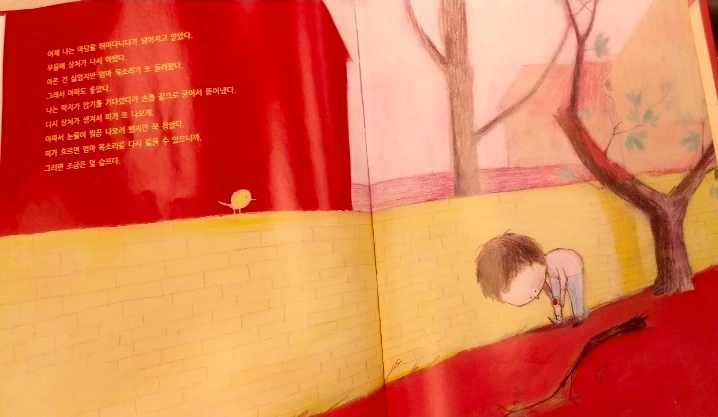 무릎에 상처가 나서 아팠다.