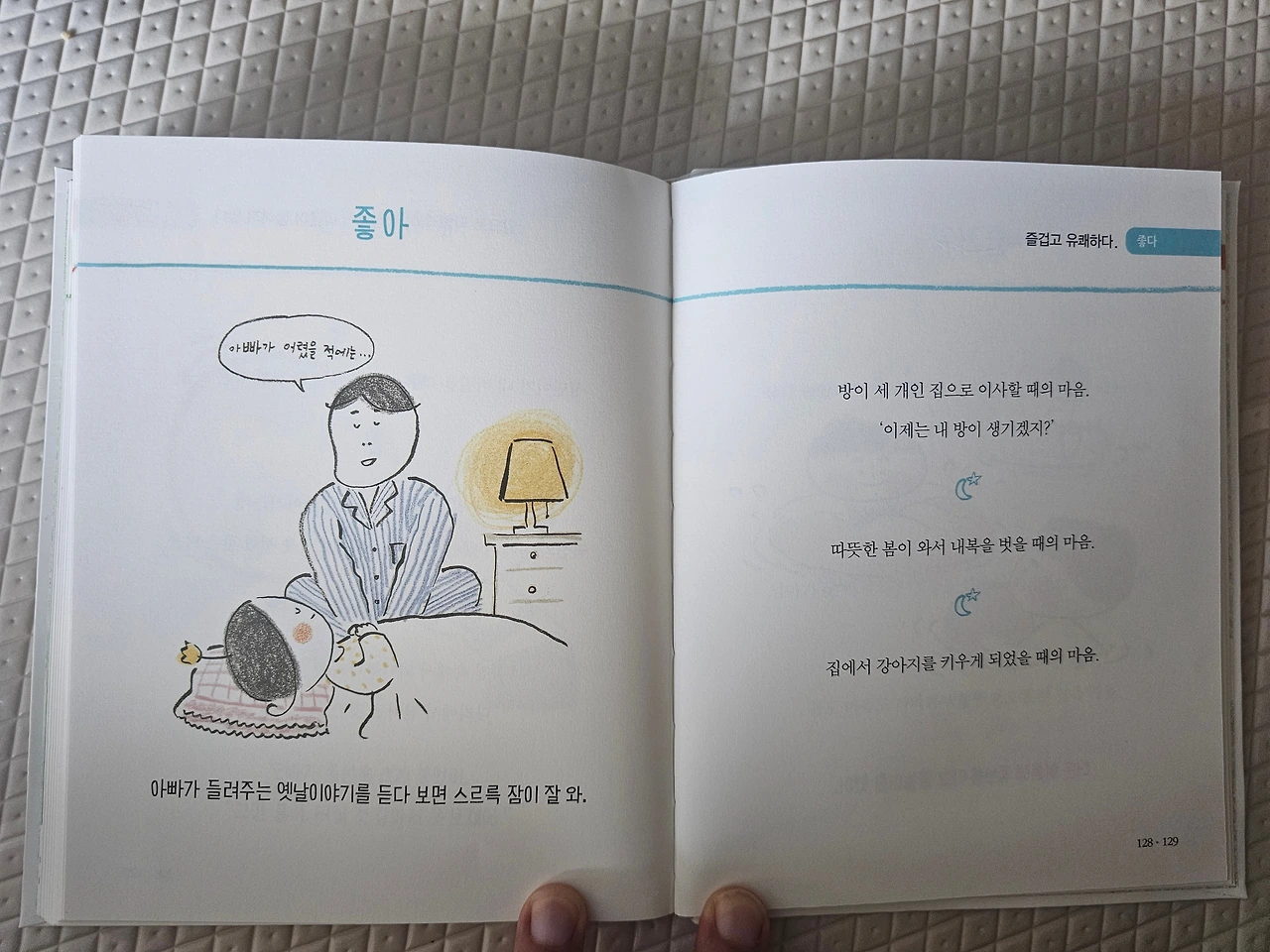 아빠가 자기를 재워주는 일러스트와 자신을 비난하고 놀리는 친구가 실려있는 페이지를 보고 선택한 것 같아서 큰 딸의 마음이 대번 와닿았다.