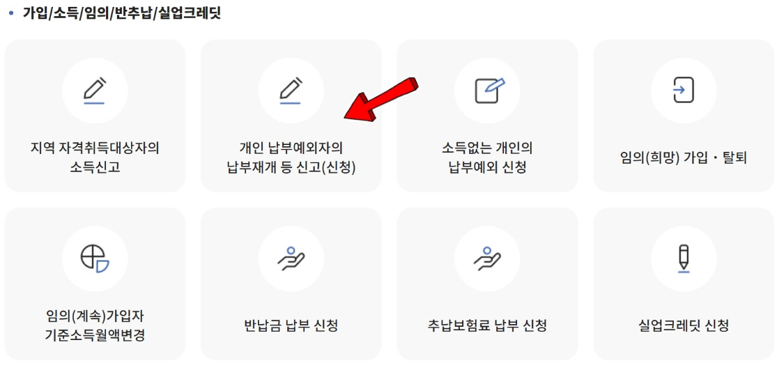 - 납부예외는 사유발생일(사업장자격상실신고)의 다음 달 15일까지 신청해야 함