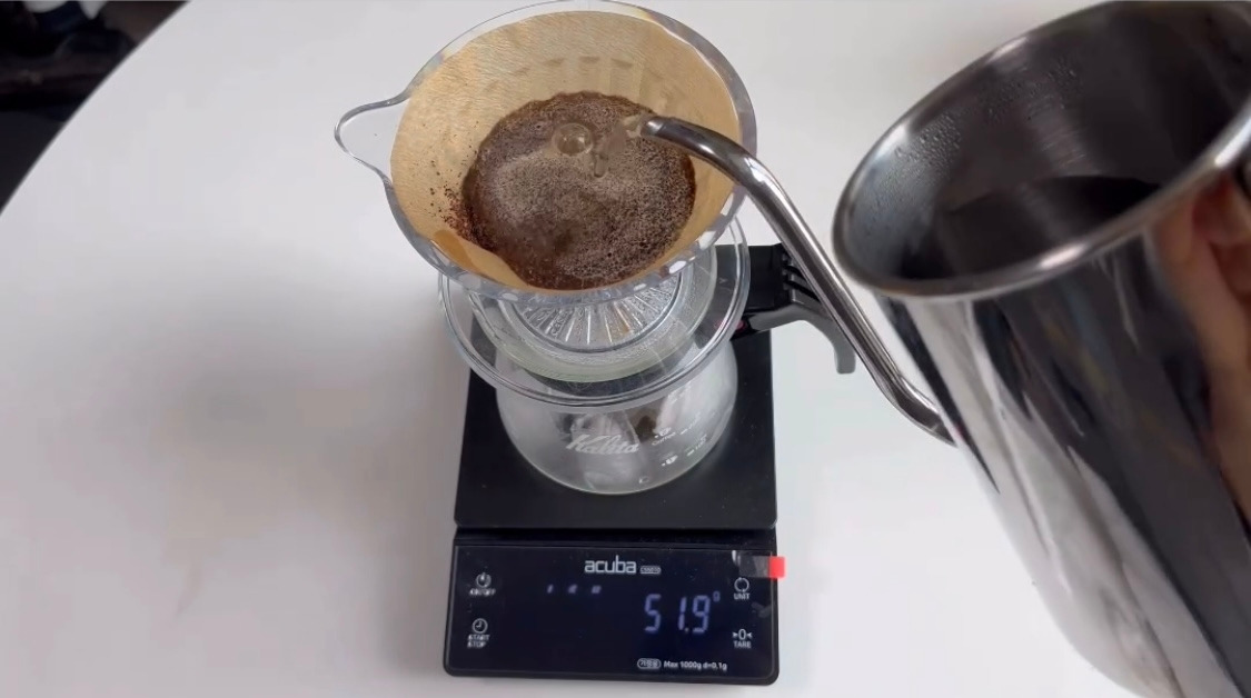 5. 린싱 1회 후 드립용 물을 4회로 나누어 내린다.