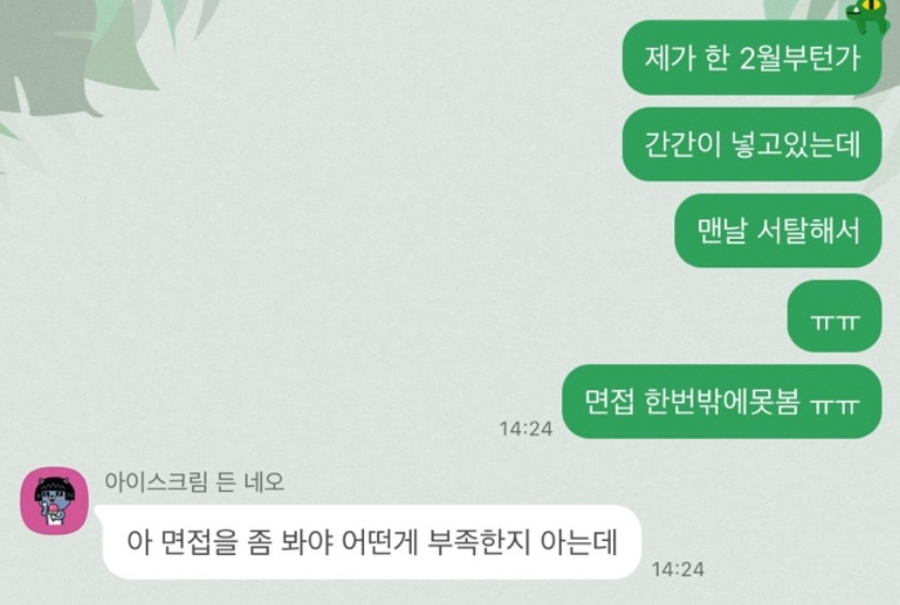 강의 준비를 하며 내가 탈락에 대해 얼마나 고민했는지 증명하고 싶었다. 100만 원 내고 면접 과외도 받은 글도 증거고(brunch.co.kr/@beibringen/35)몇 년 전 대학 선배에게 조언을 구한 카톡 메시지도 증거였다. 지금 다니는 회사로 이직하기 전, 계속되는 광탈로 너무 답답한 마음에 최근 이직에 성공했다는 선배에게 졸업 이후 처음으로 연락하게 됐다. 그 당시에는 눈에 들어오지 않았던 메시지가 이제서야 눈에 들어왔다.